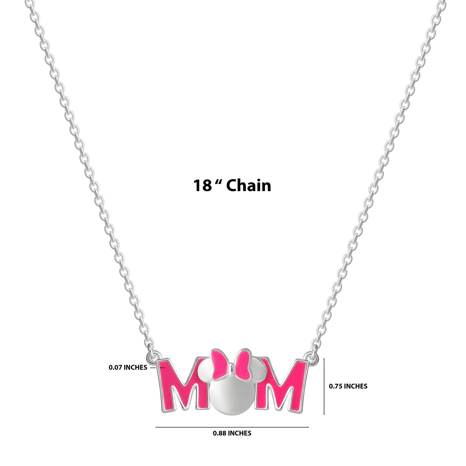 Brass Slv flash plated 18" Minnie Mouse Pink Enamel Bow "Mom" Pendant Necklace