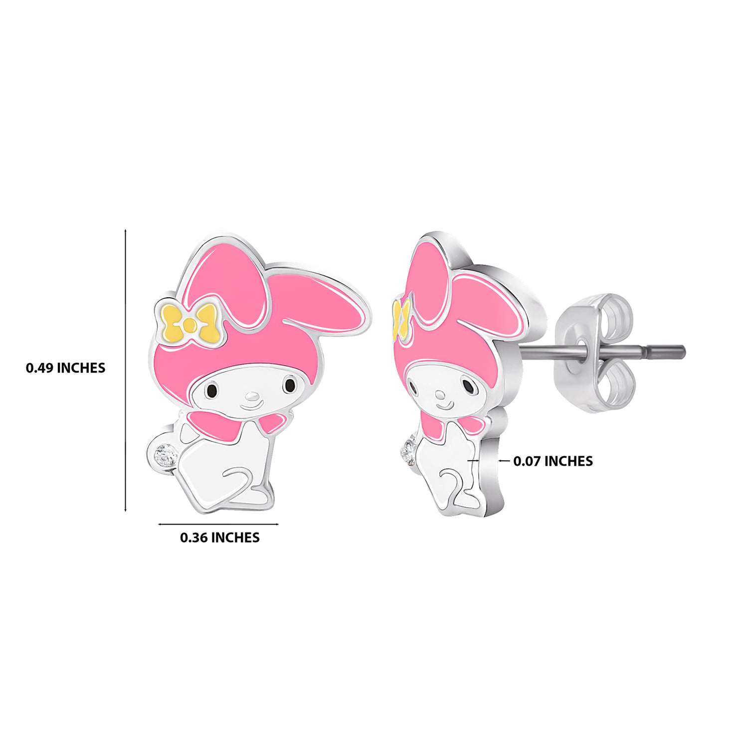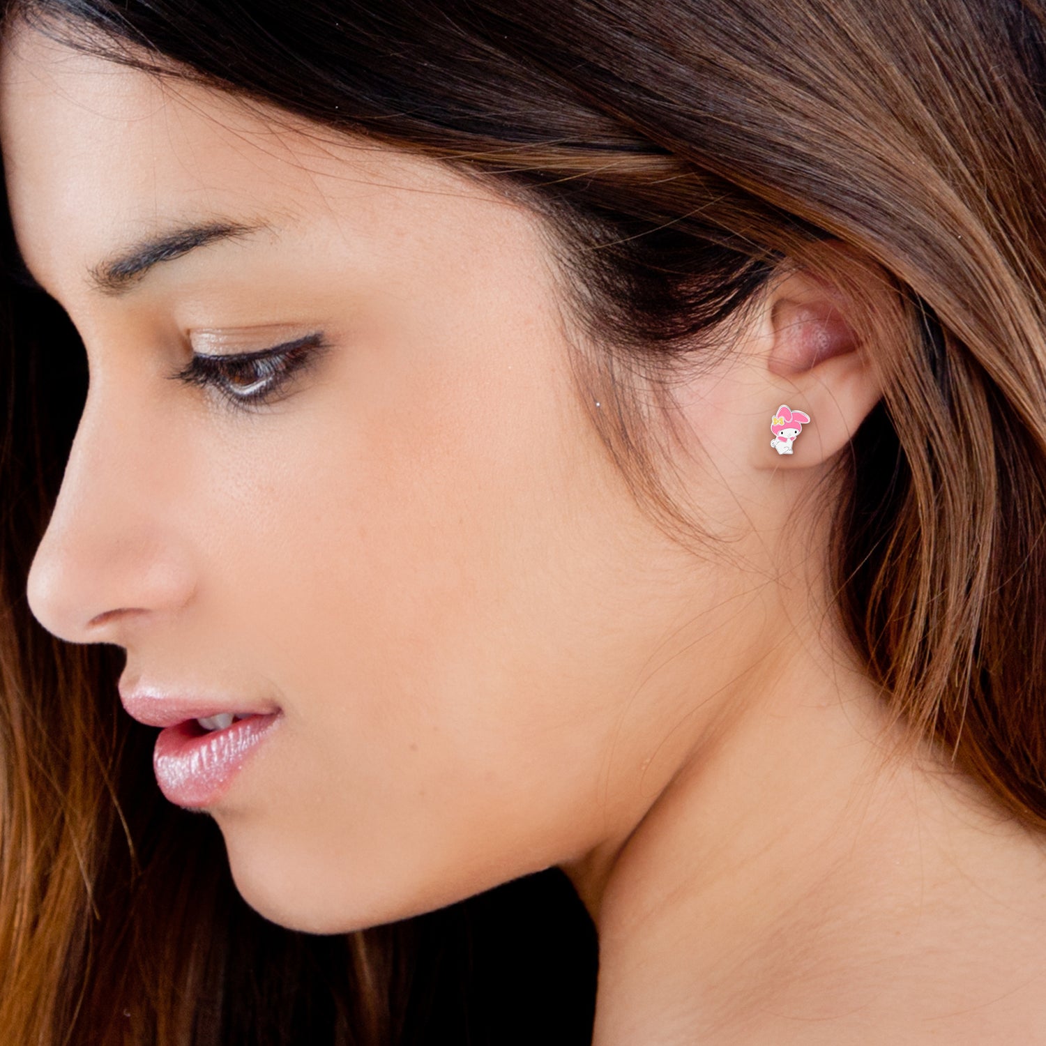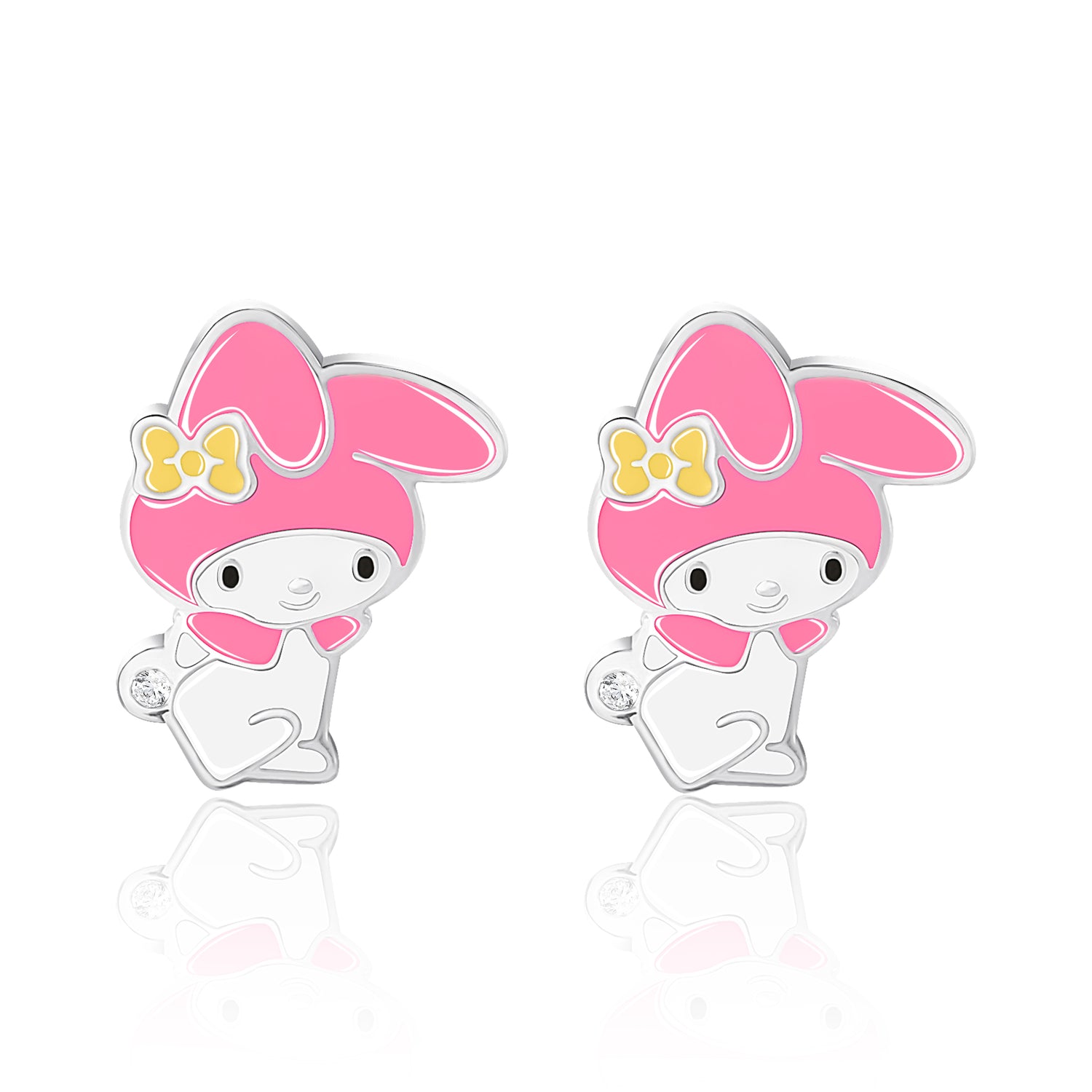 Brass Slv flash plated Enamel Clear Crystal My Melody Stud Earring
