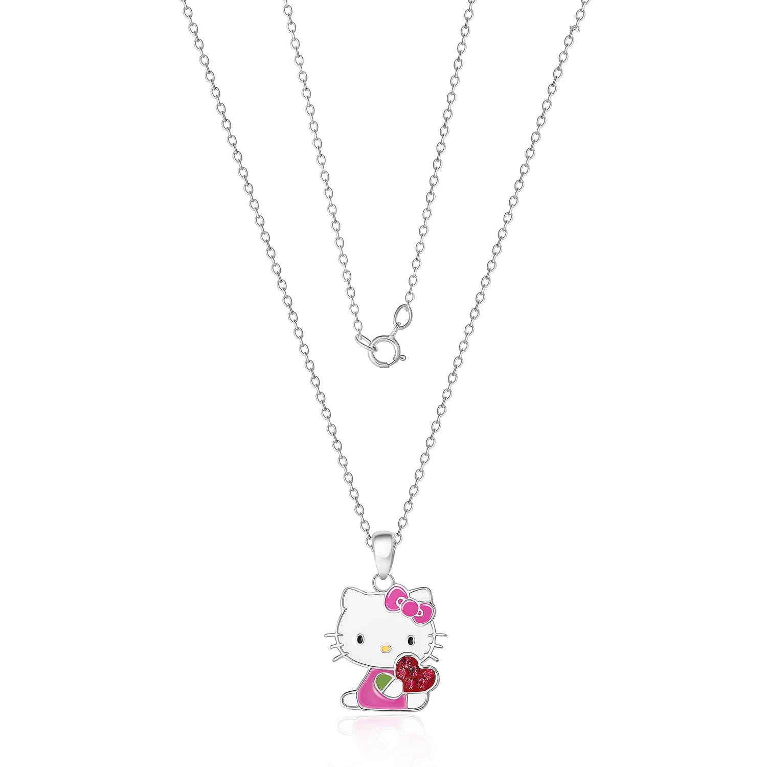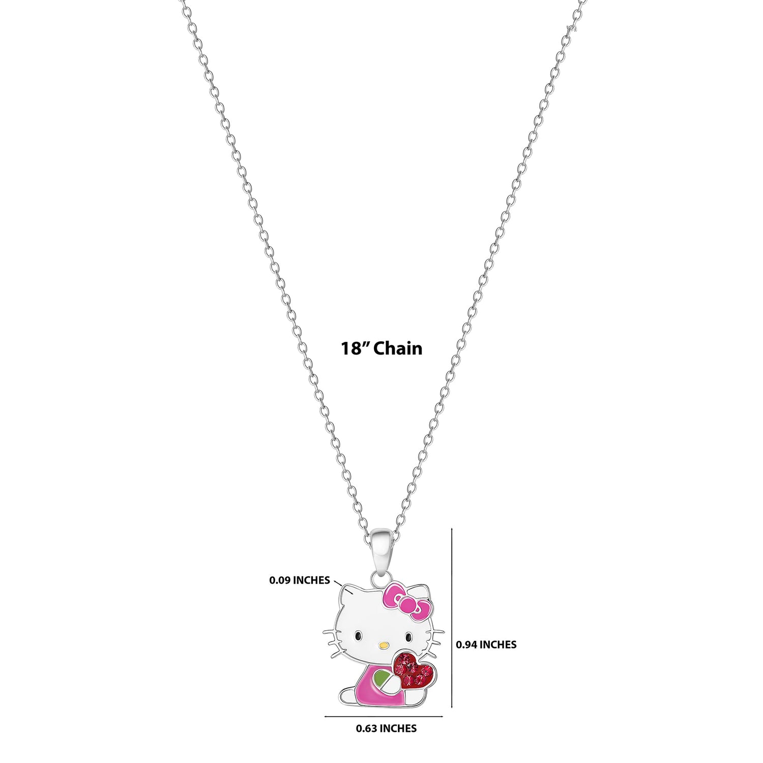 Hello Kitty Pendant with Chain: Elegant Brass Silver-flash plated Design adorned with Enamel and Radiant Red Crystals