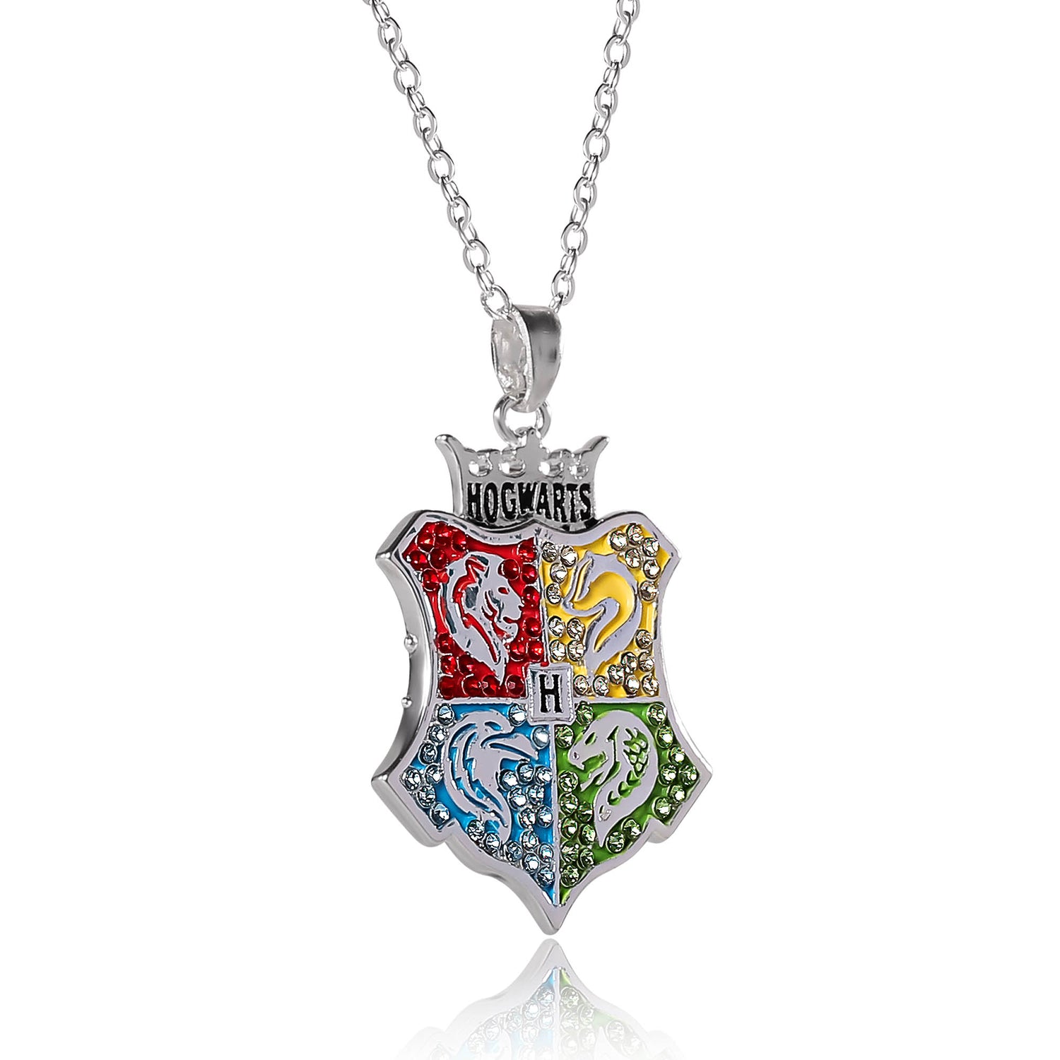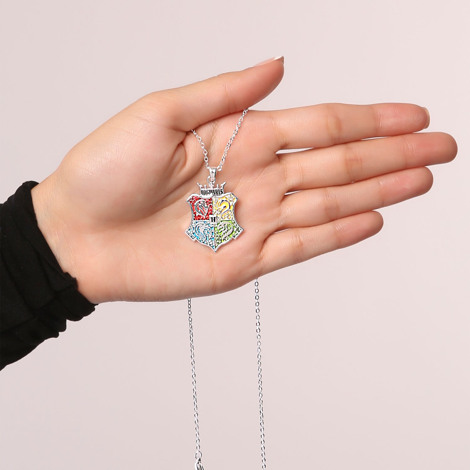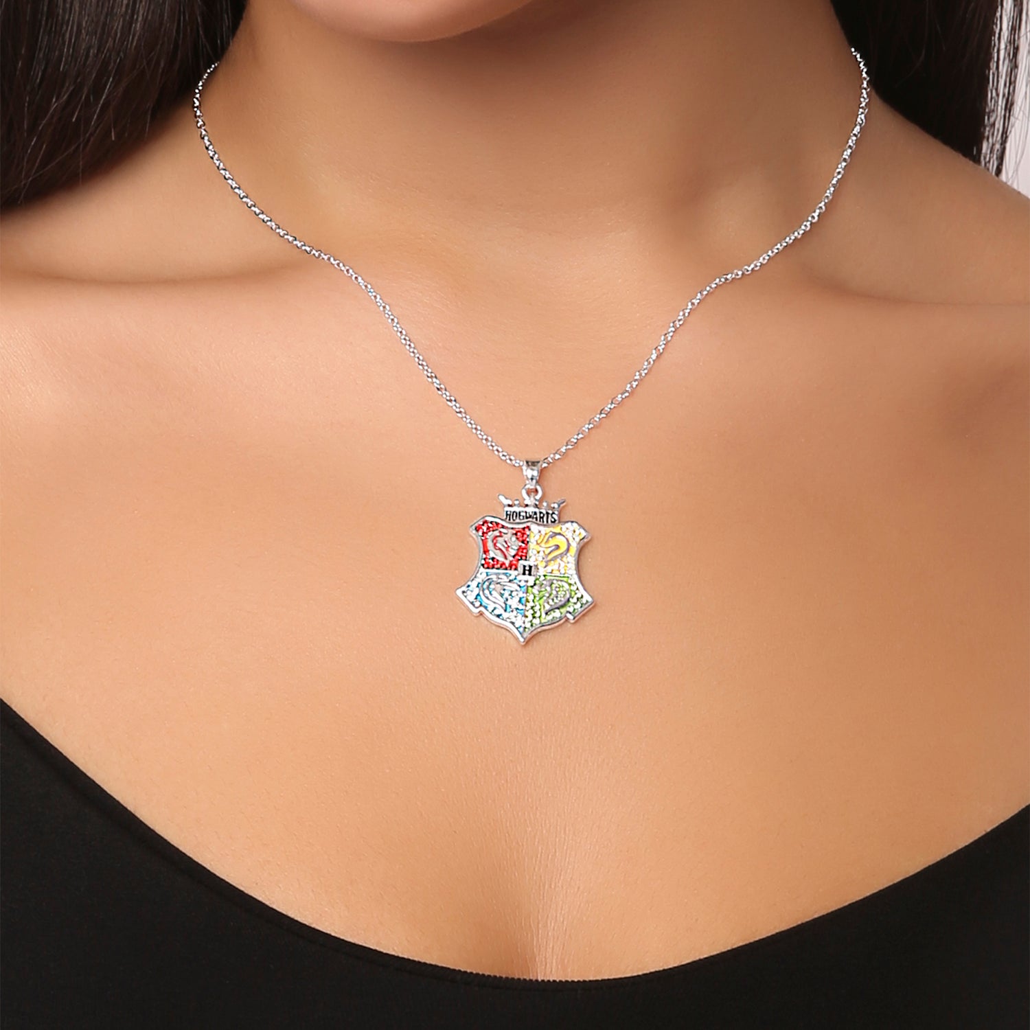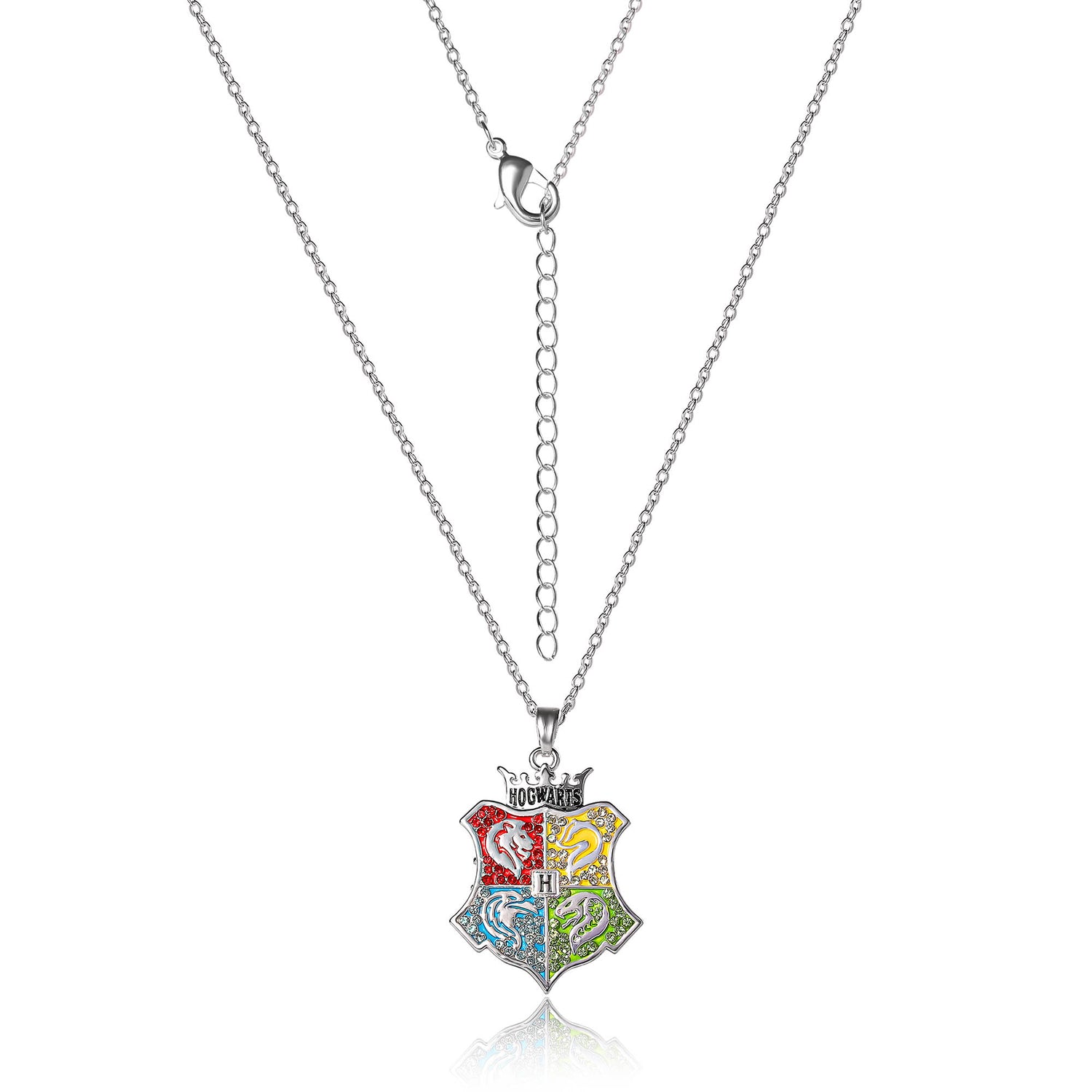 Brass Slv Plt Harry Potter Hogwarts Crest Pendant -16"+2" Chain