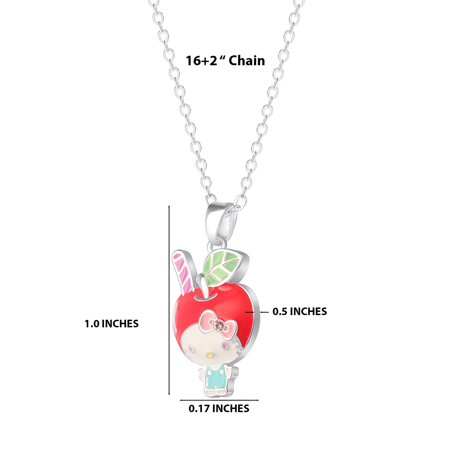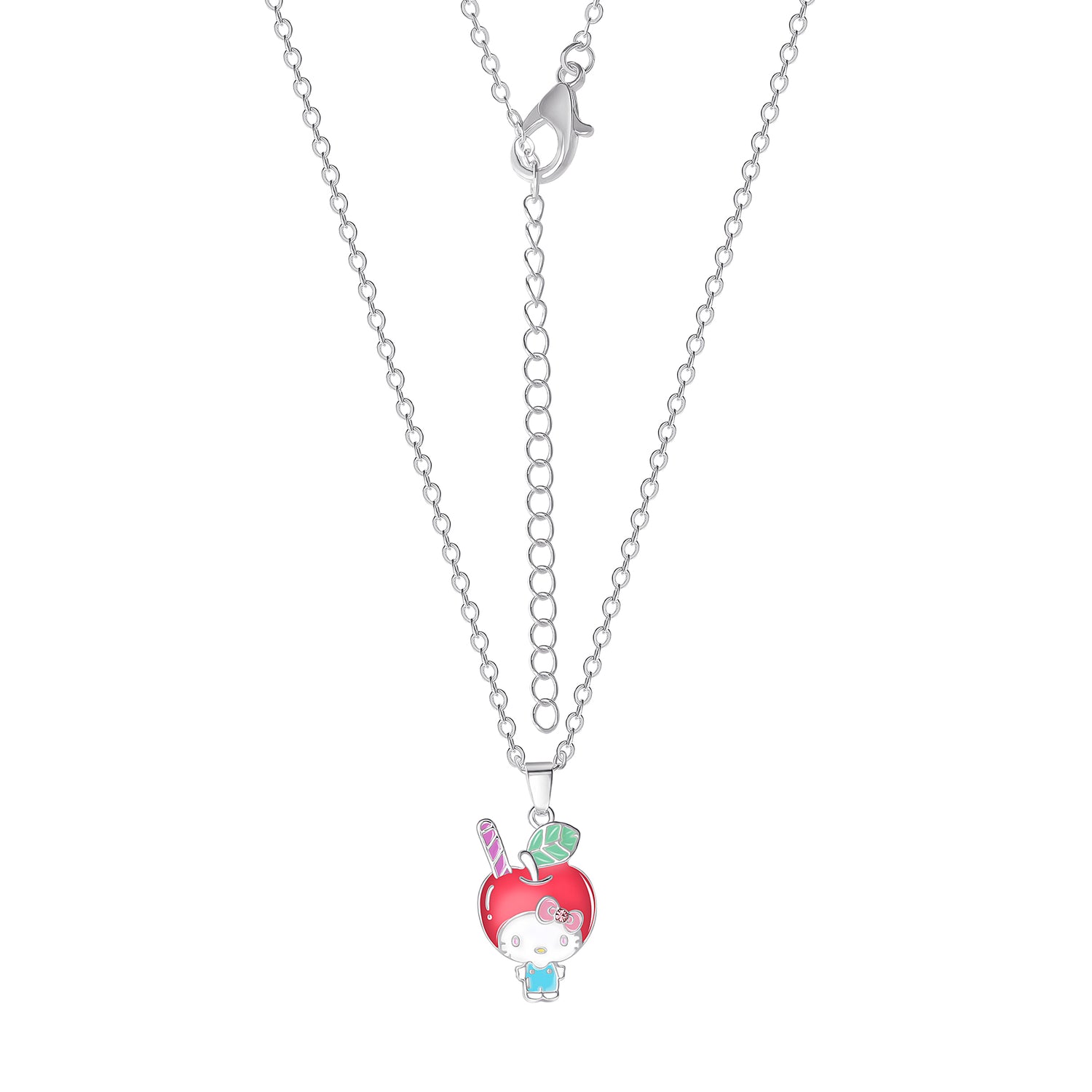 Brass Slv flash plated Hello Kitty Enamel Pink Crystal Apple Head Pendant 16" +2" Chain