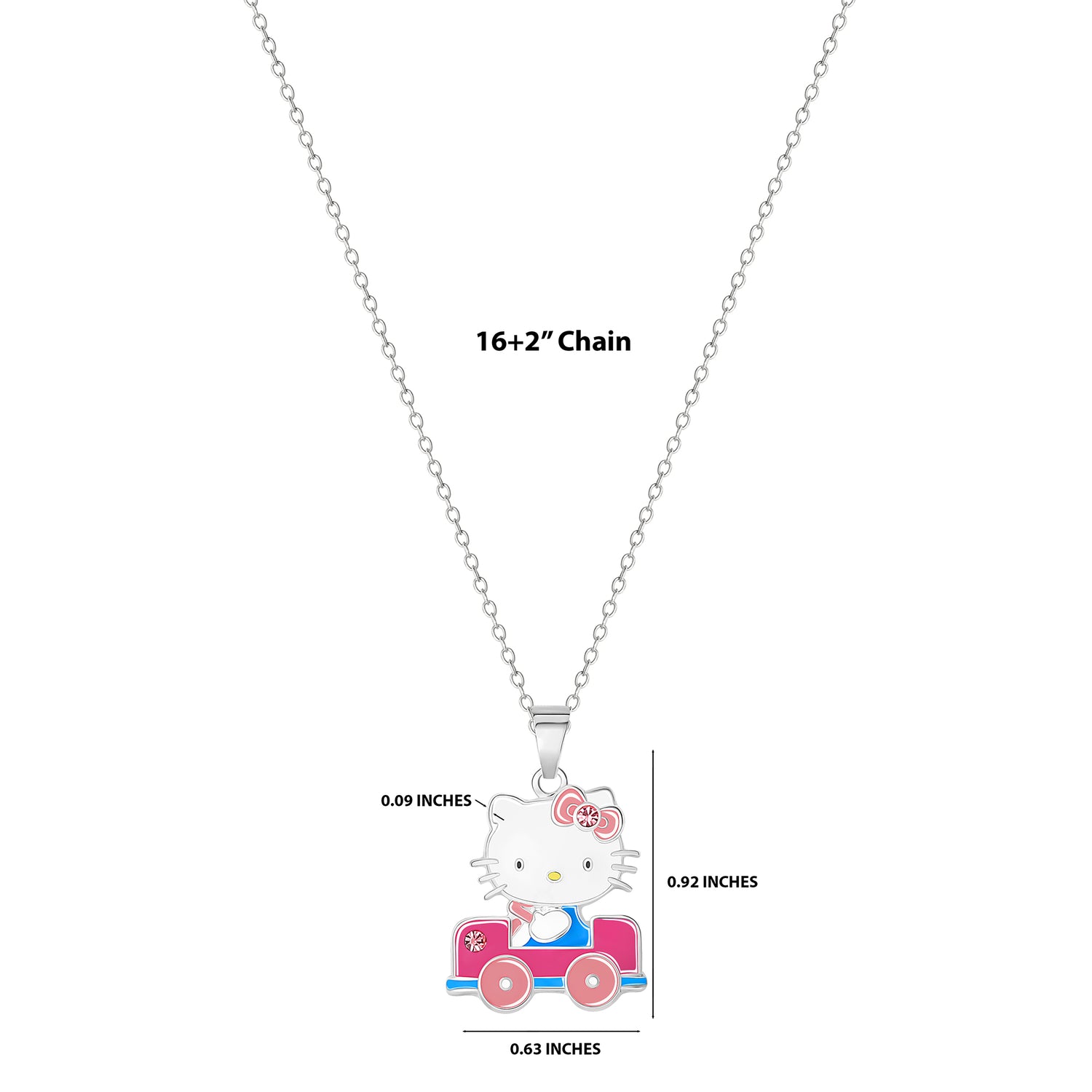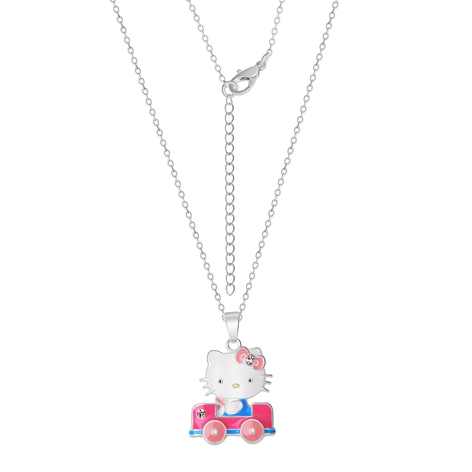 Brass Slv flash plated Hello Kitty Enamel & Pink Crystal Car 3-D Pendant 16+2 Chain