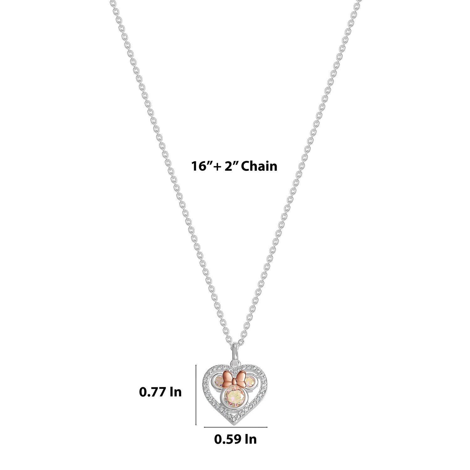 Brass Tt flash plated Minnie Heart W/Clear & Ab Cz Pendant 16"+2" Chain