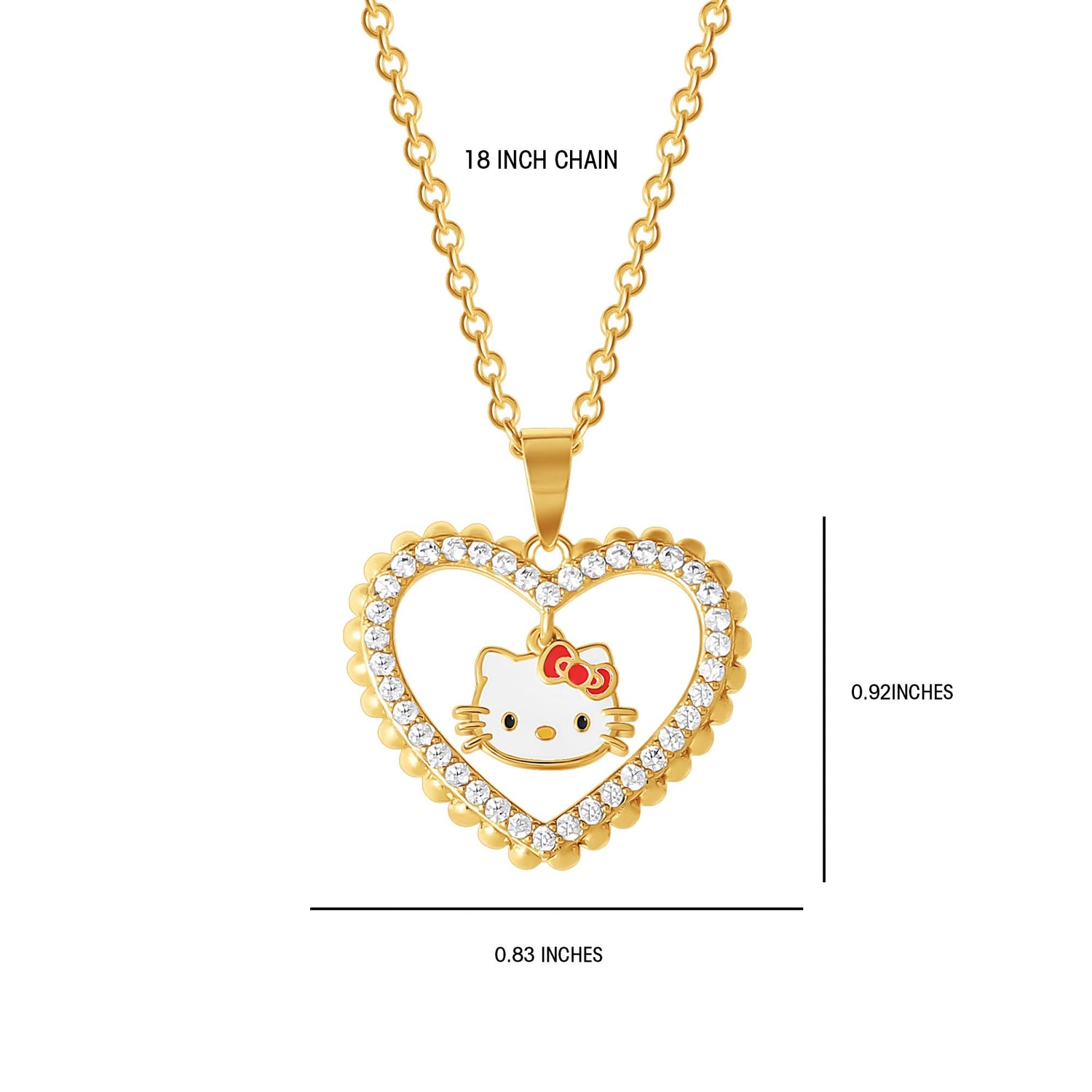Hello Kitty Heart Cubic Zirconia Dangle Necklace