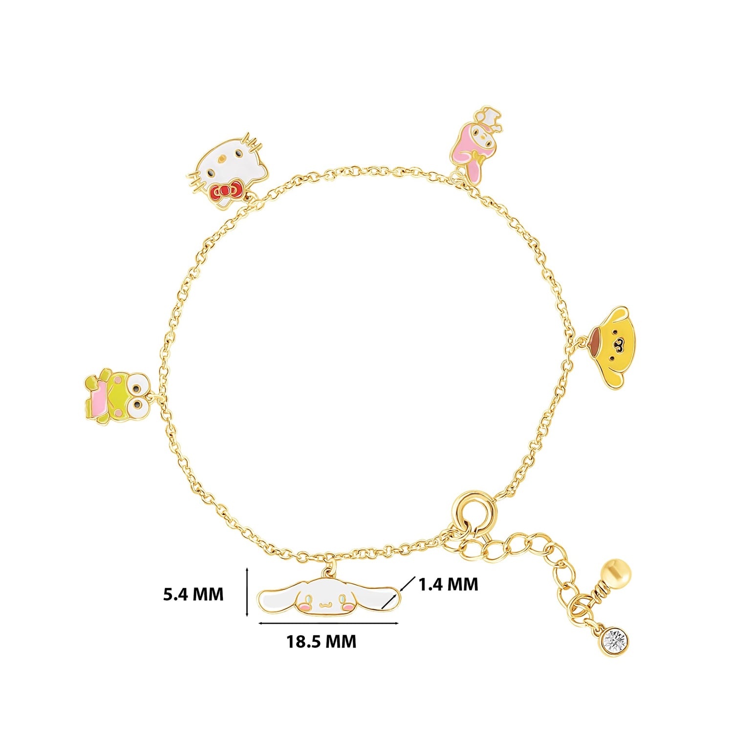 Step into the enchanting world of Hello Kitty and her friends with our Hello Kitty and Friends Charm Bracelet, a delightful journey through a realm of charm and nostalgia. This bracelet features an array of intricately crafted charms, showcasing beloved characters in their iconic poses. From Hello Kitty herself to her companions, each charm tells a story of friendship and adventure. Expertly designed and thoughtfully detailed, the bracelet captures the essence of these characters that have touched hearts across generations. Wear this bracelet as a token of your affection for the timeless magic of Hello Kitty and her friends, carrying their spirit with you wherever you go