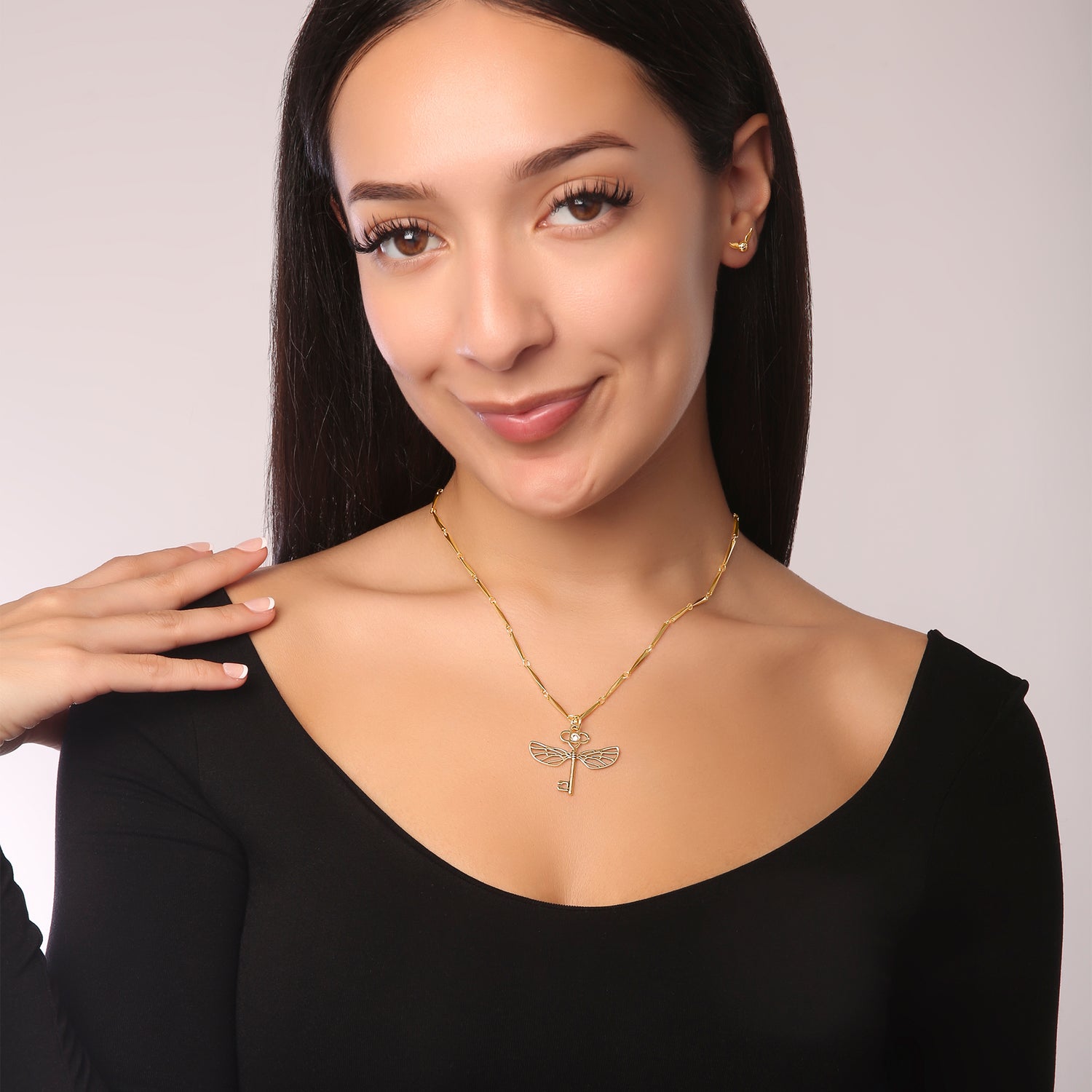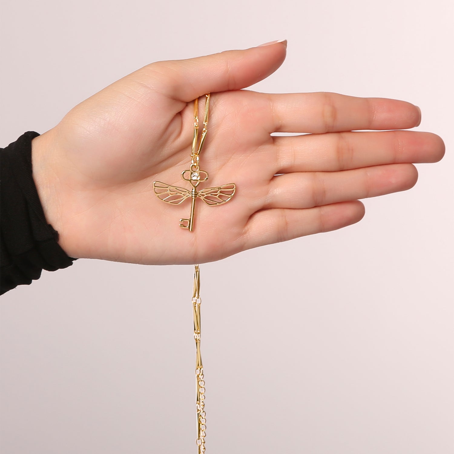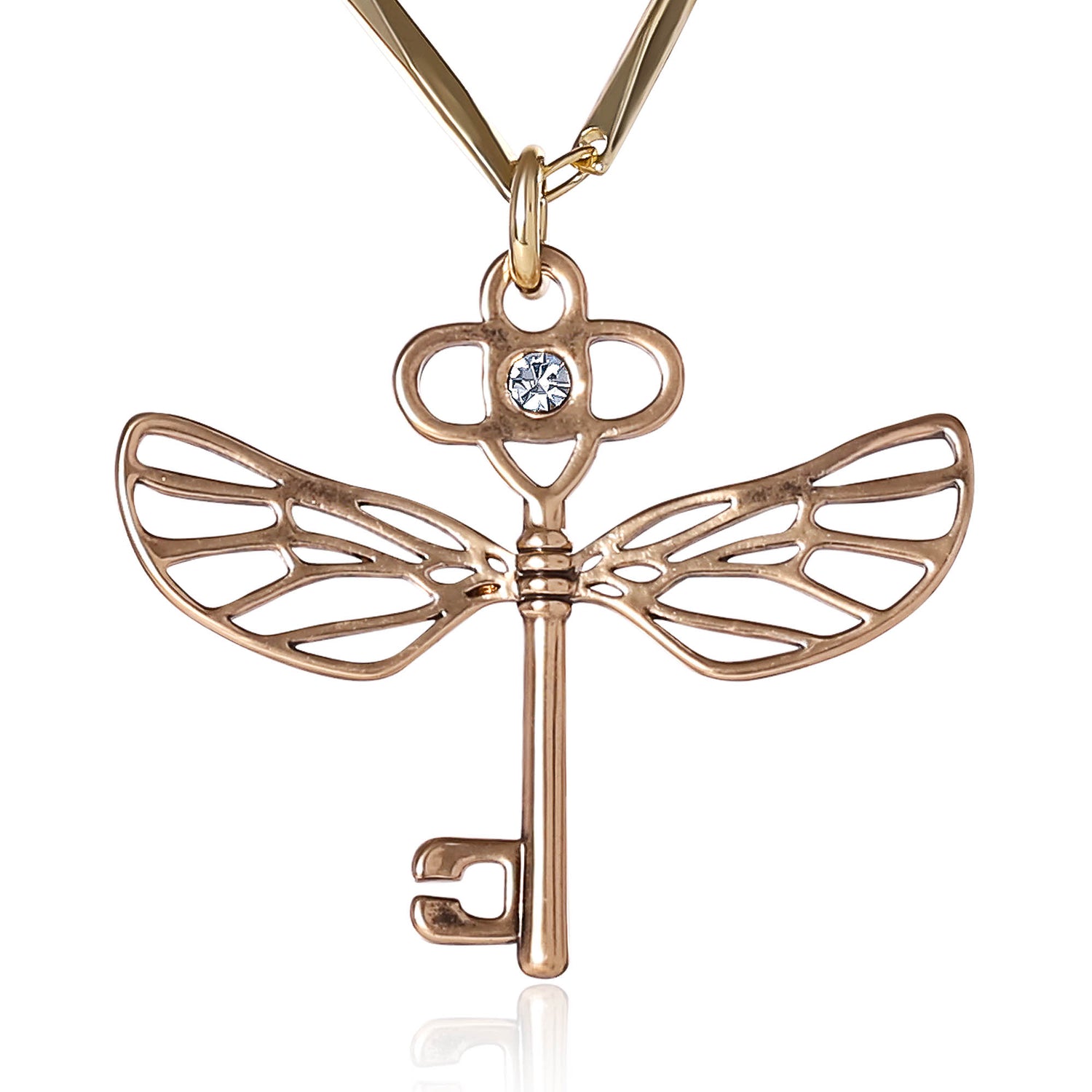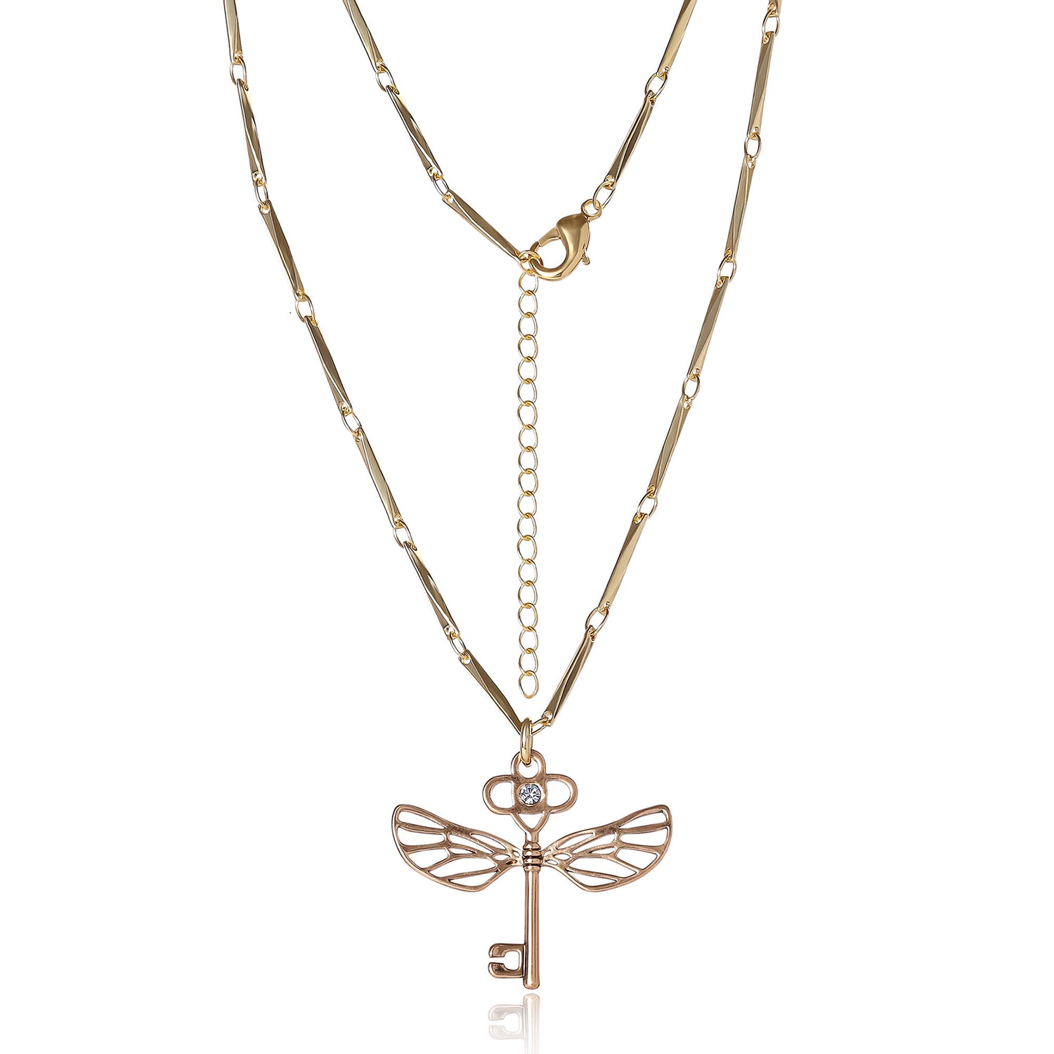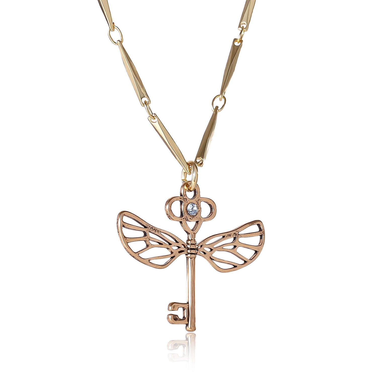 Brass Yg Plt Harry Potter Key With Wings Pendant W/ 16"+2" Bar Chain