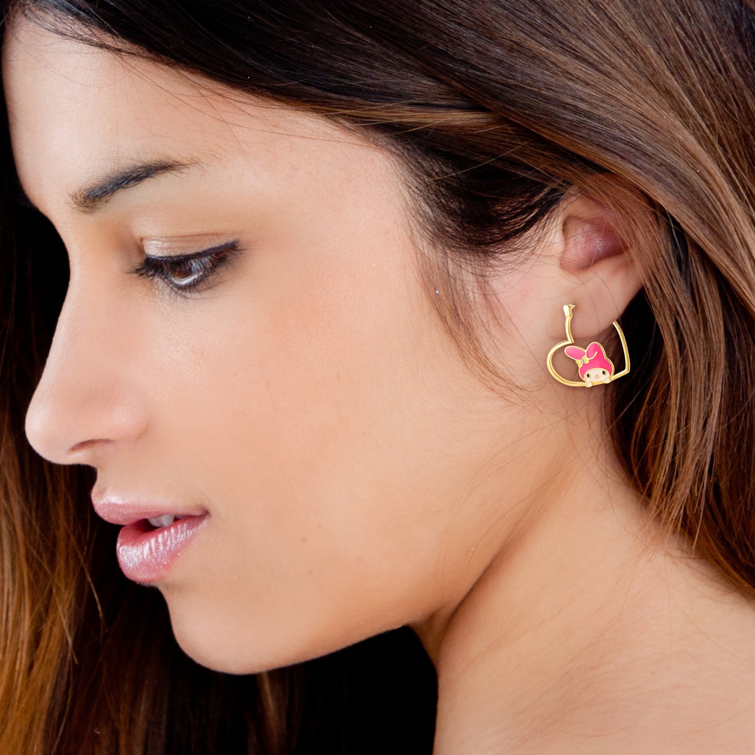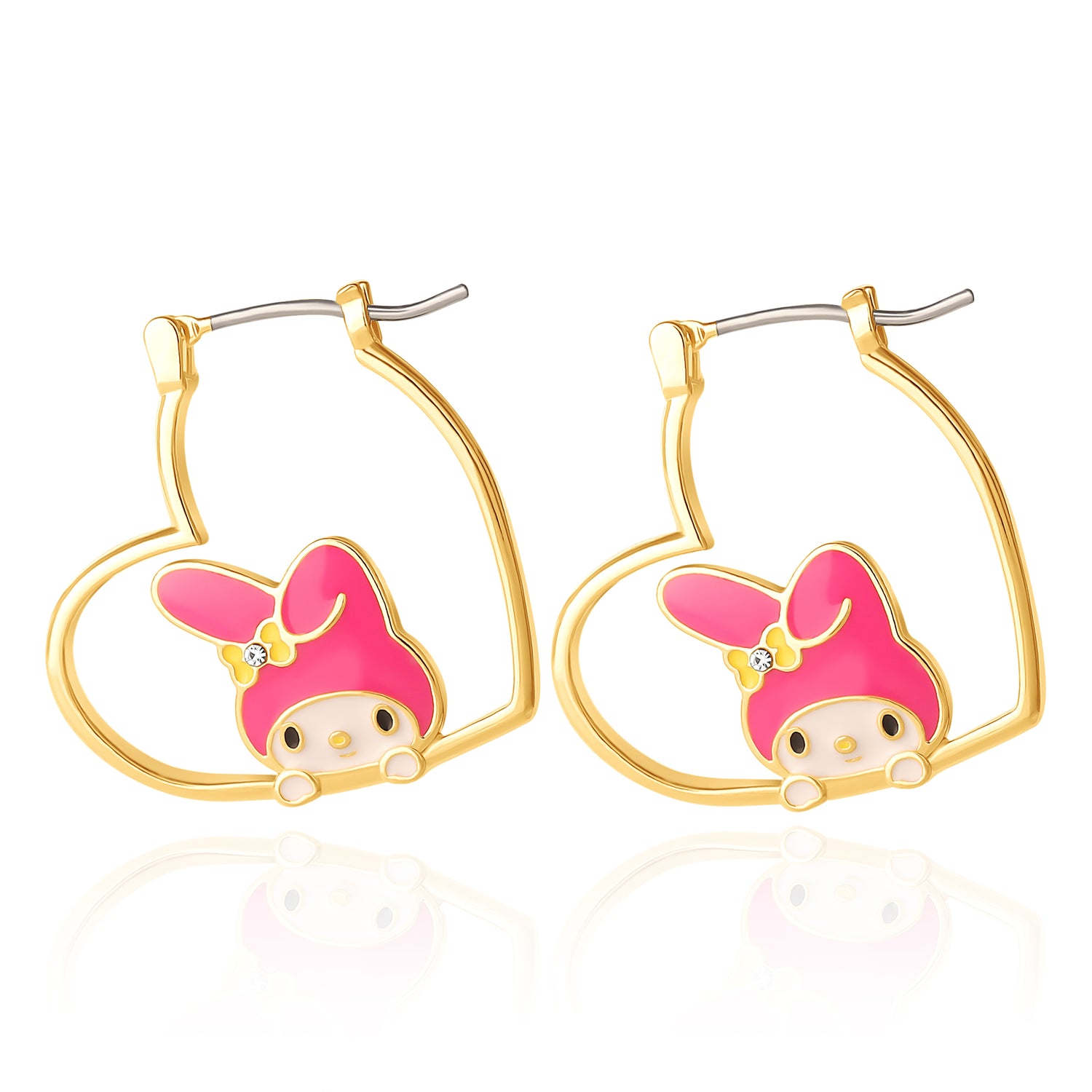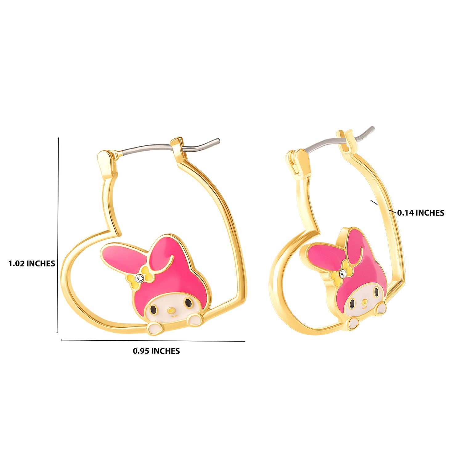 Sanrio Womens My Melody Earrings, Yellow Gold Plated My Melody Heart Hoop Earrings Official License