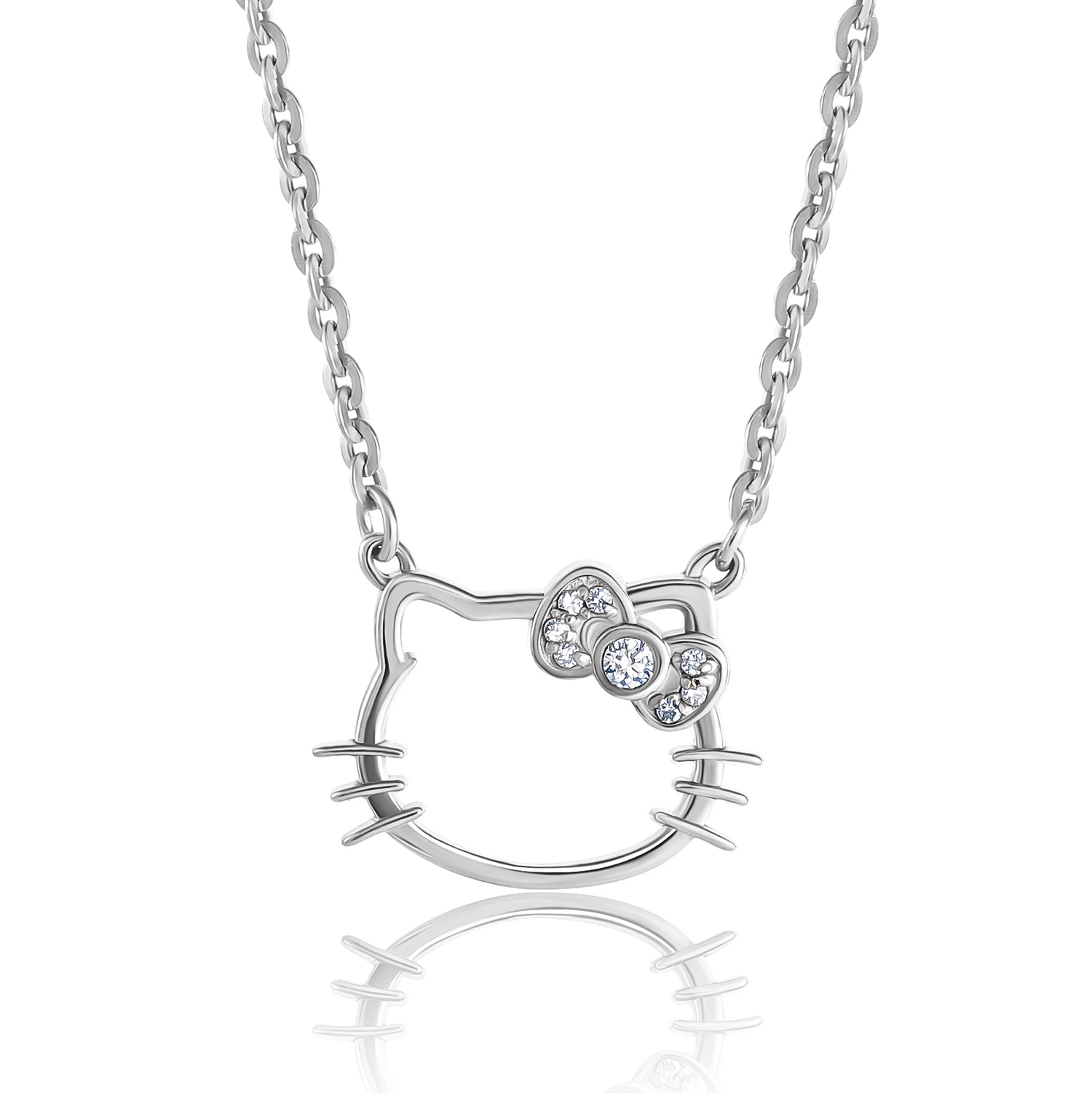 Officially Licensed Hello Kitty Jewelry for Women: Give yourself or someone you love the gift of a Hello Kitty diamond necklace. This lab created diamond pendant necklace features a silver Hello Kitty face silhouette with a diamond-encrusted bow.