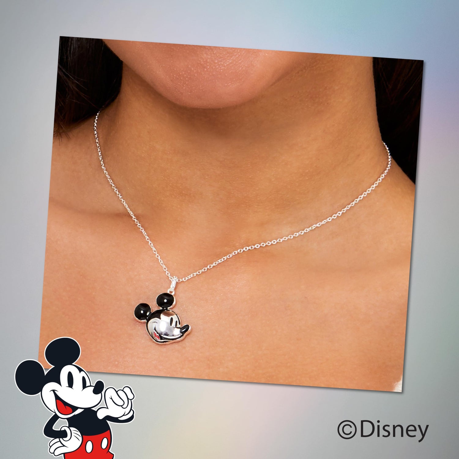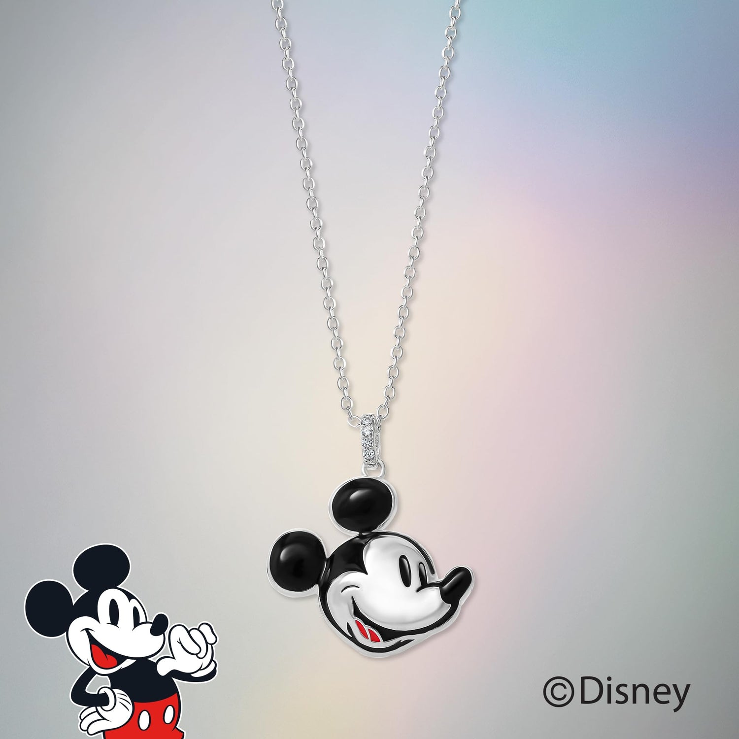 Disney 100 Womens Mickey Mouse Necklace 18", Official License D100 Silver-Plated Necklace with Mickey Mouse Pendant