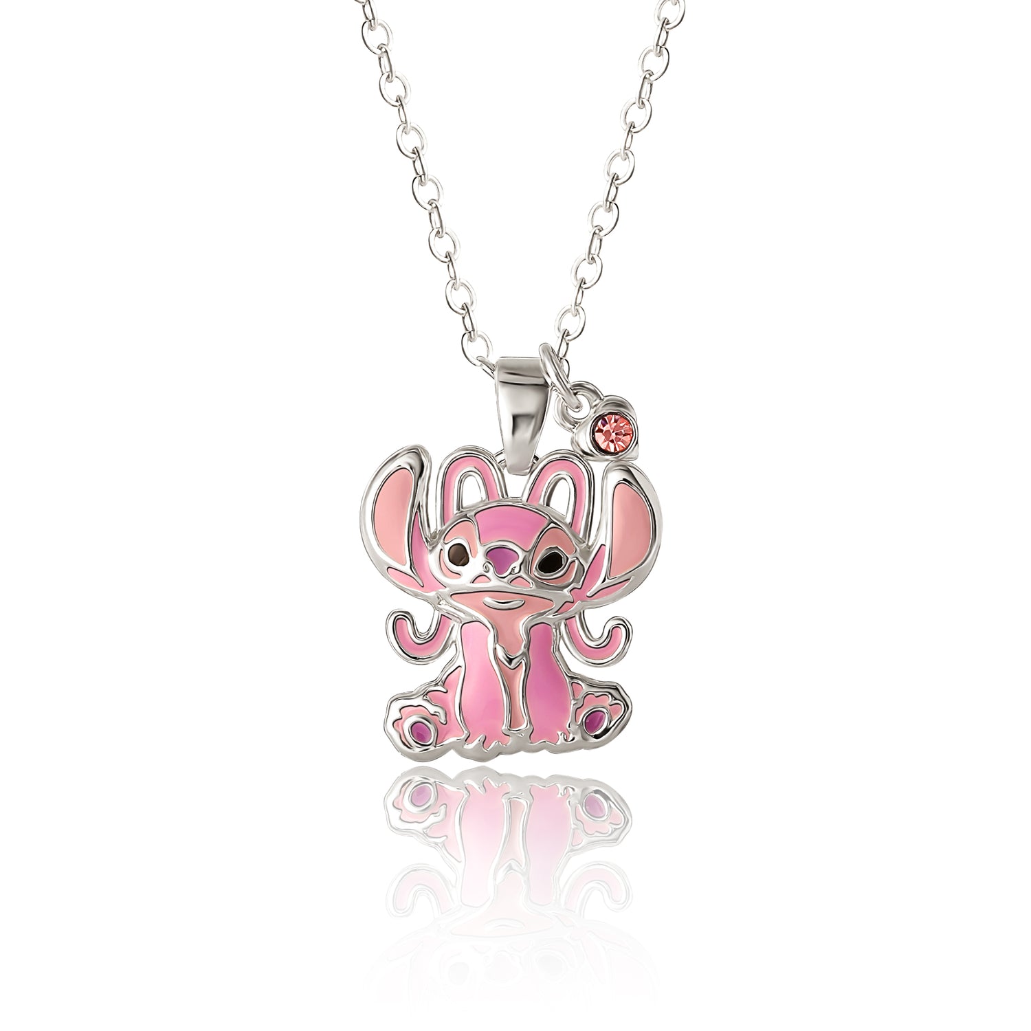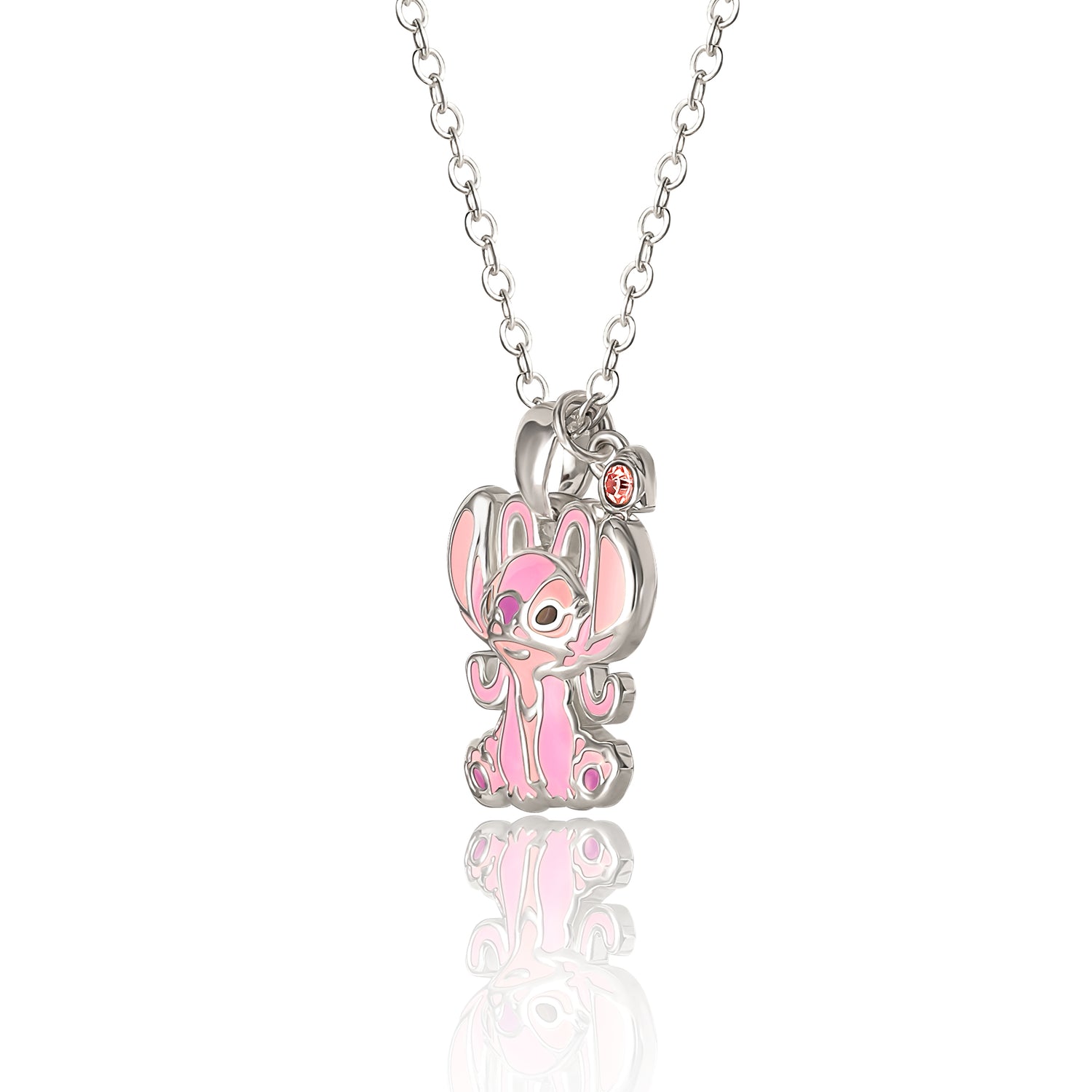 Disney Angel Brass Flash Silver Plated & Pink Crystal Pendant, 16"+2" Chain