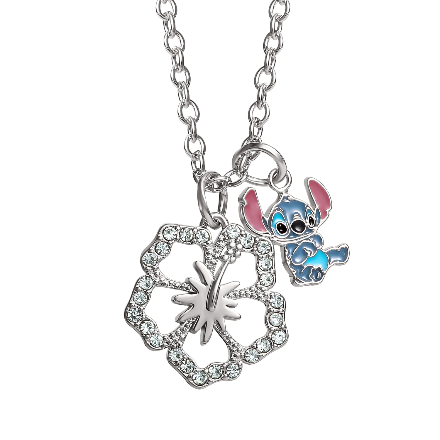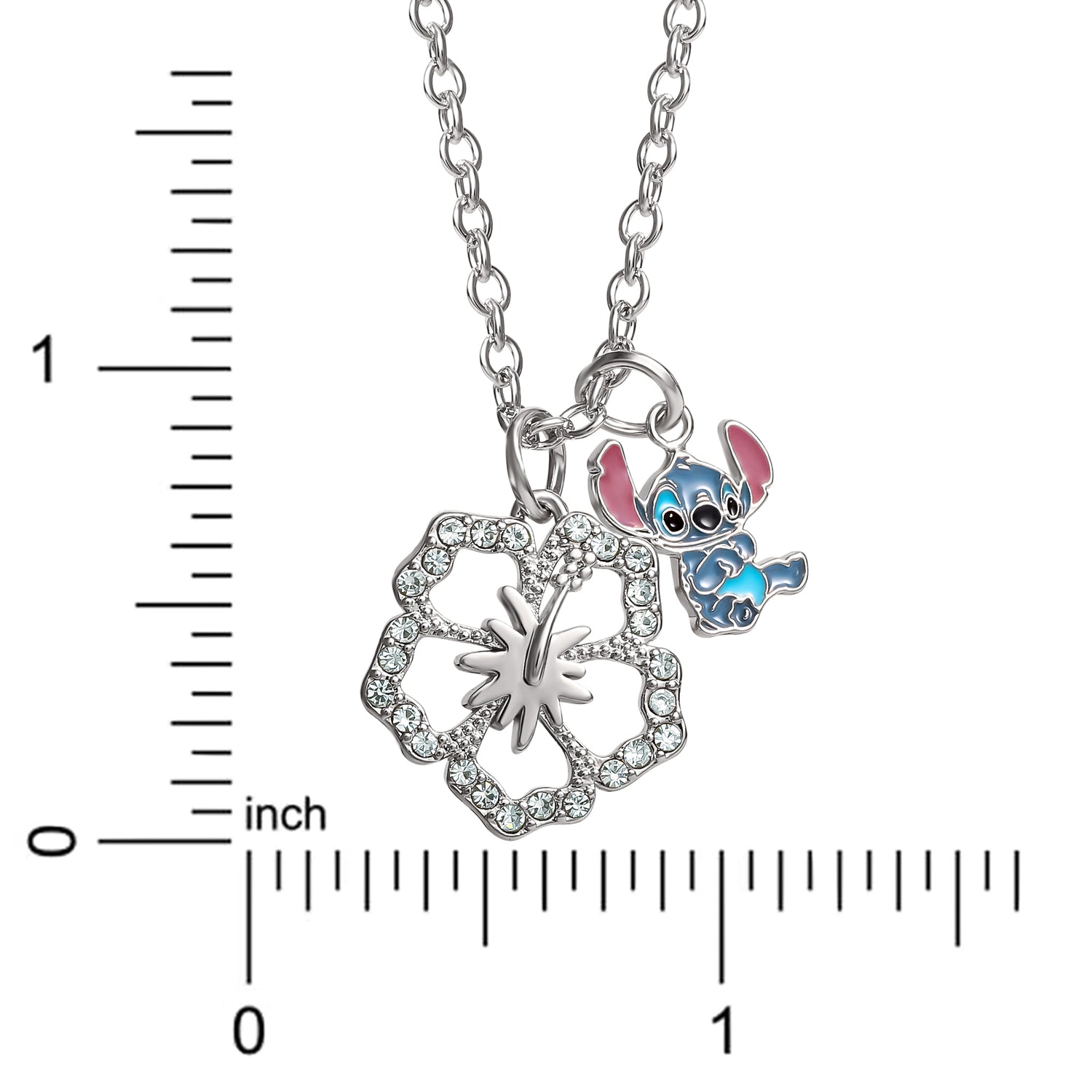 Disney Lilo and Stitch Silver plated Stitch and Flower Pendant Necklace