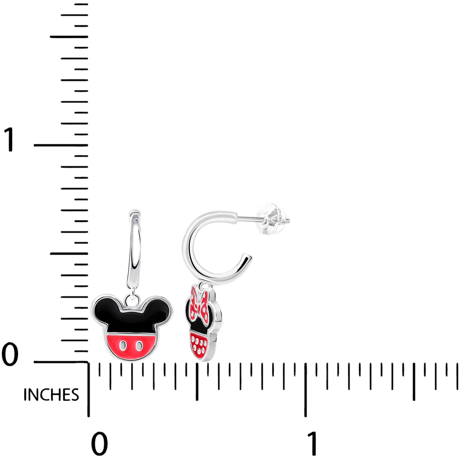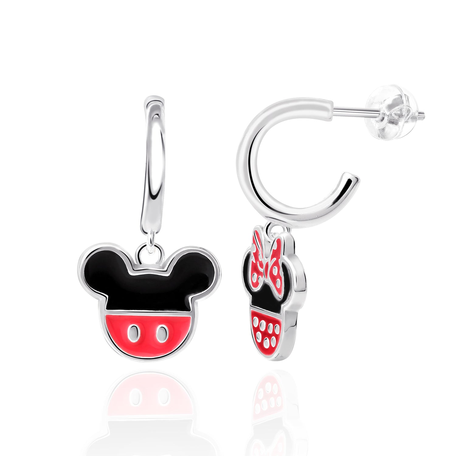 Disney Mickey and Minnie Mouse Mismatched Sterling Silver Hoop Charm Earrings