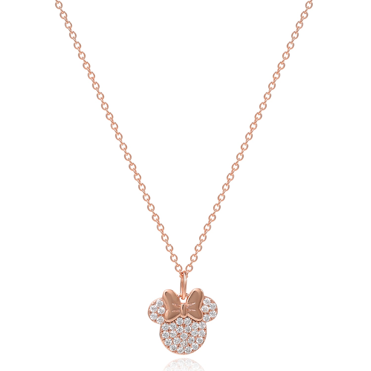 Disney Minnie Mouse Brass Flash Rose Gold Plated CZ Pave Pendant with 16"+2" Chain