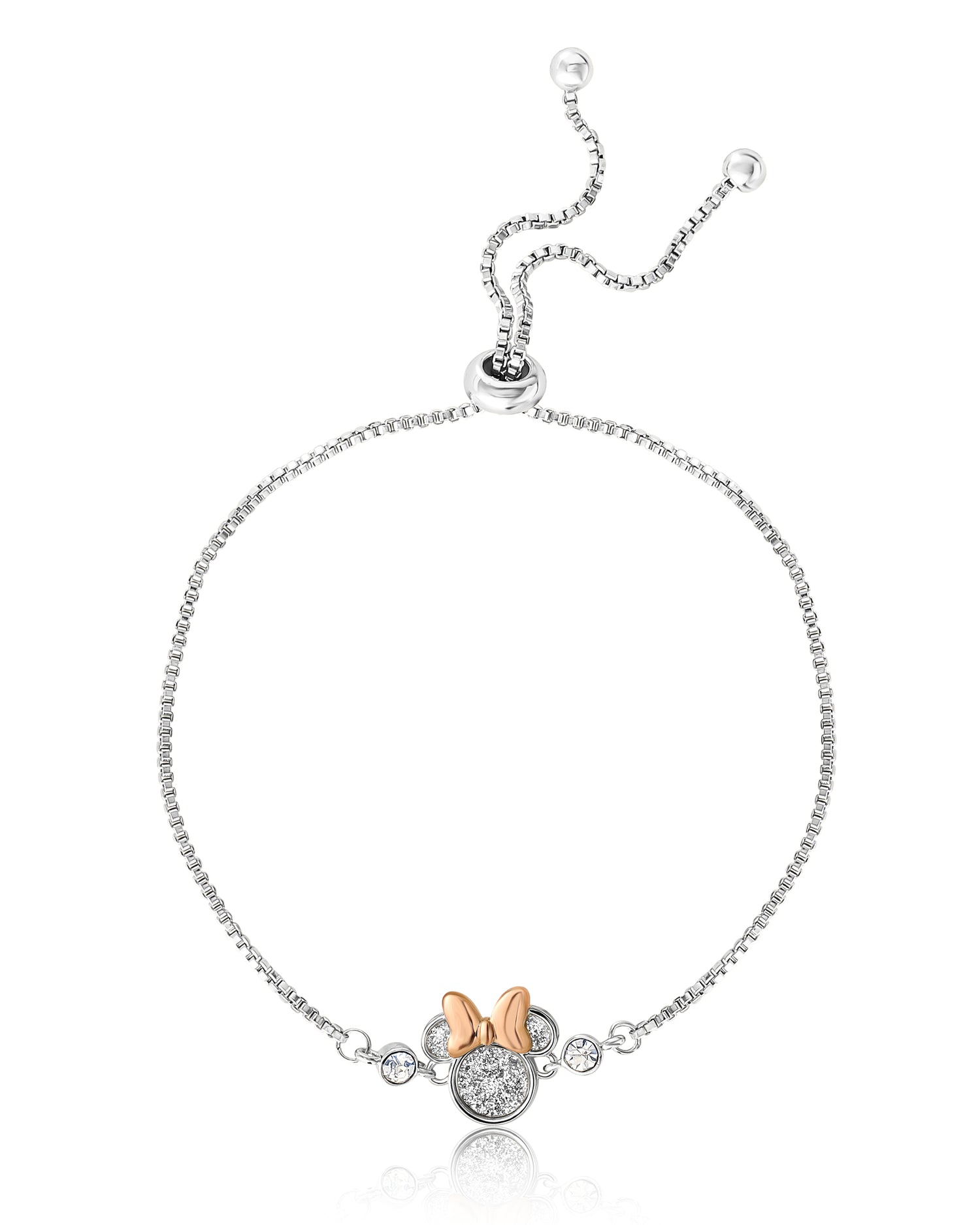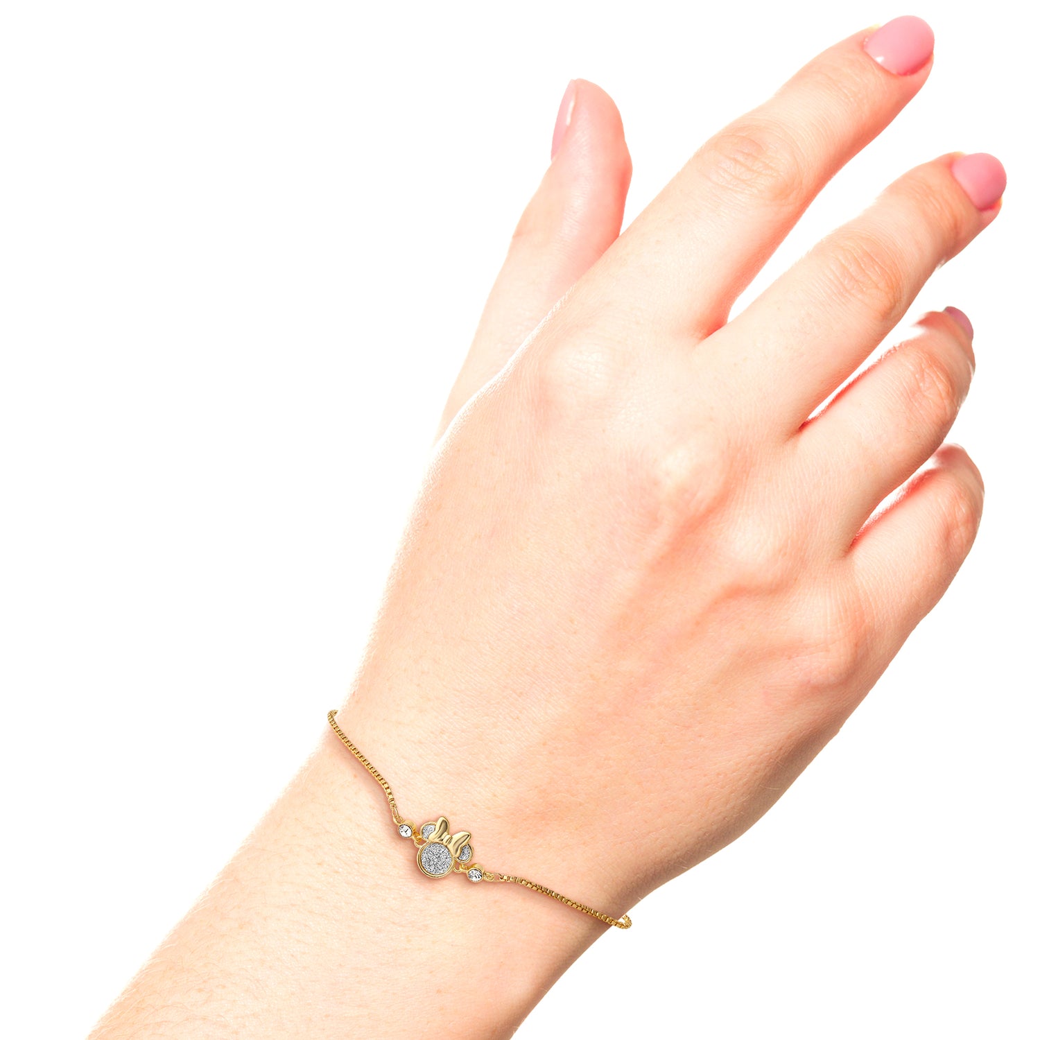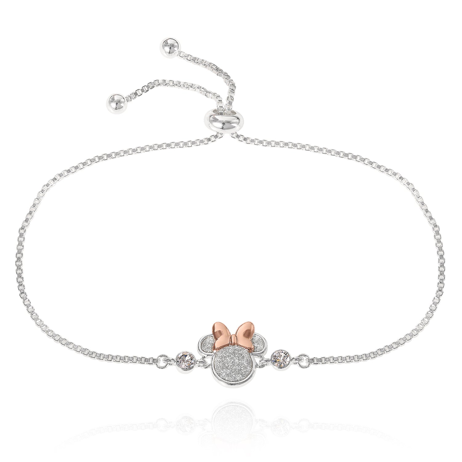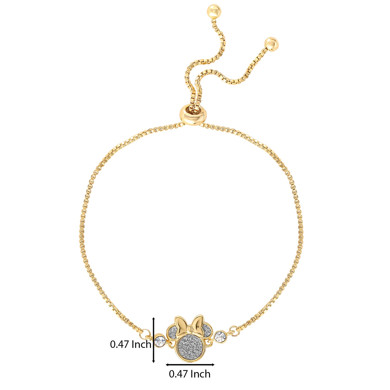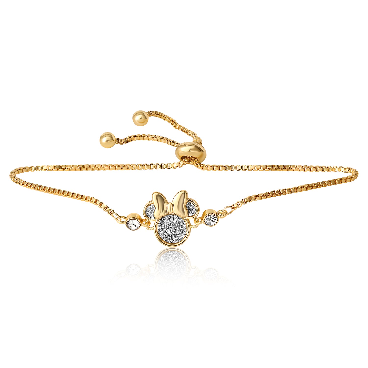 Disney Minnie Mouse Brass Flash Yellow Gold Plated Lariat Bracelet with Silver Glitter Paper and Crystal