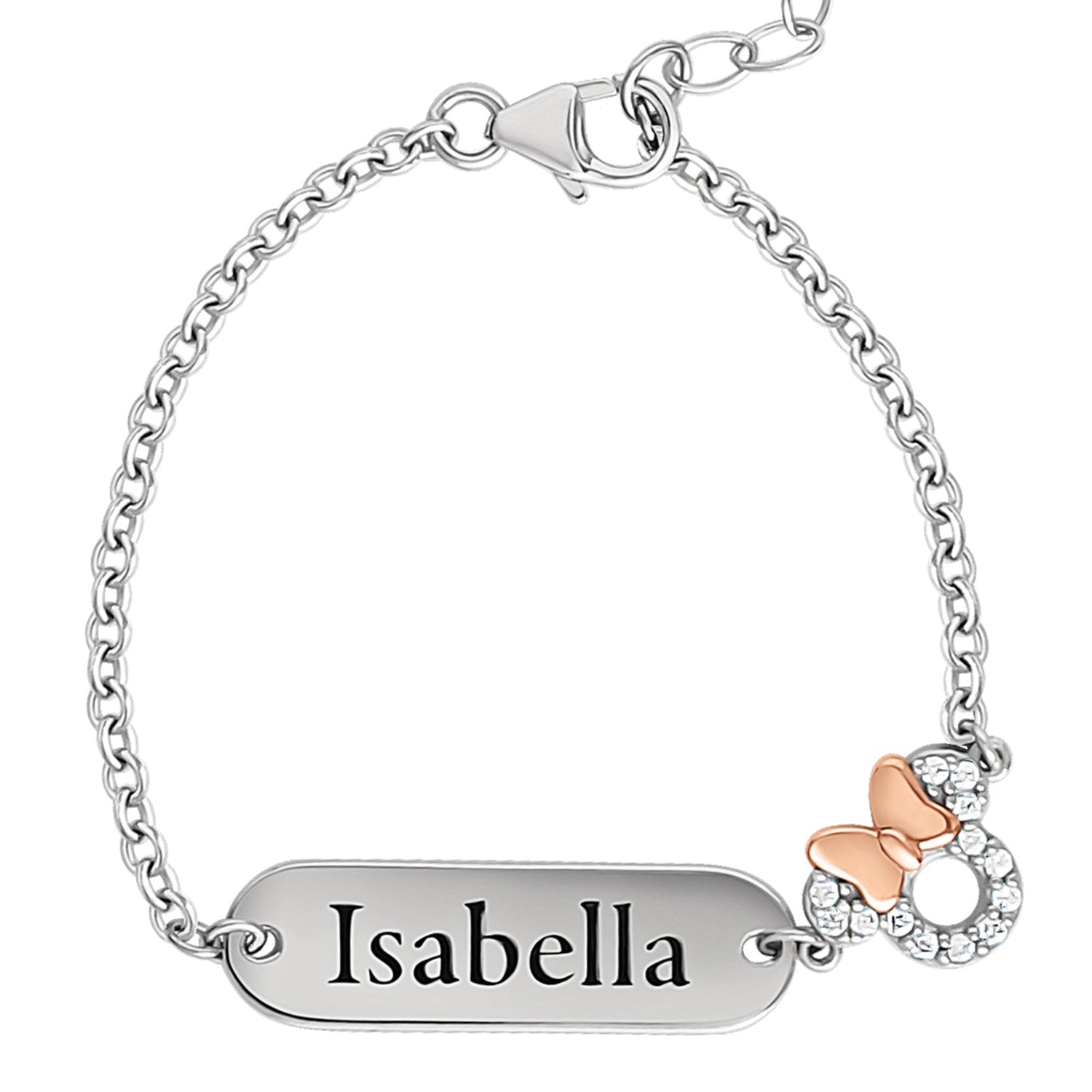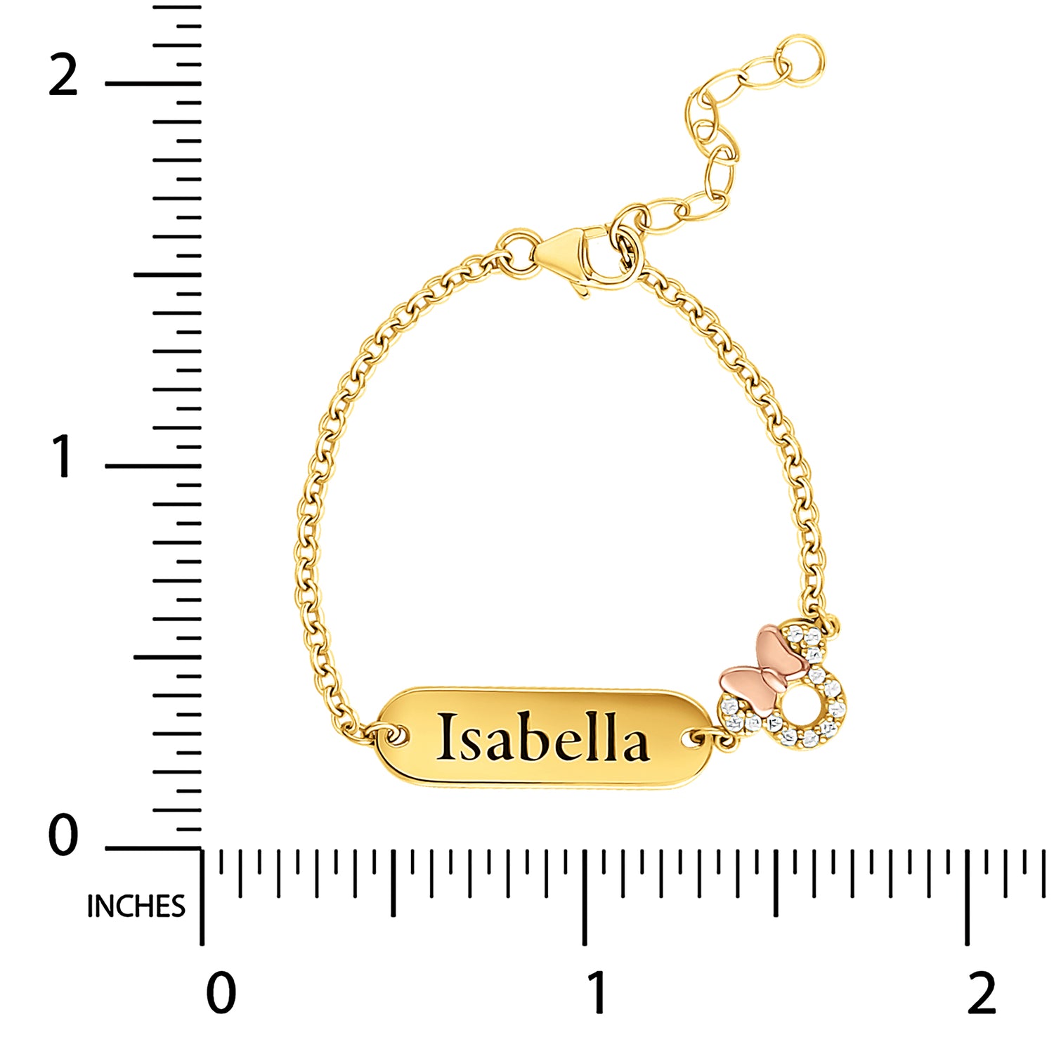 Disney Minnie Mouse Girls Custom Choice of Color: Gold or Silver ID Name Bracelet