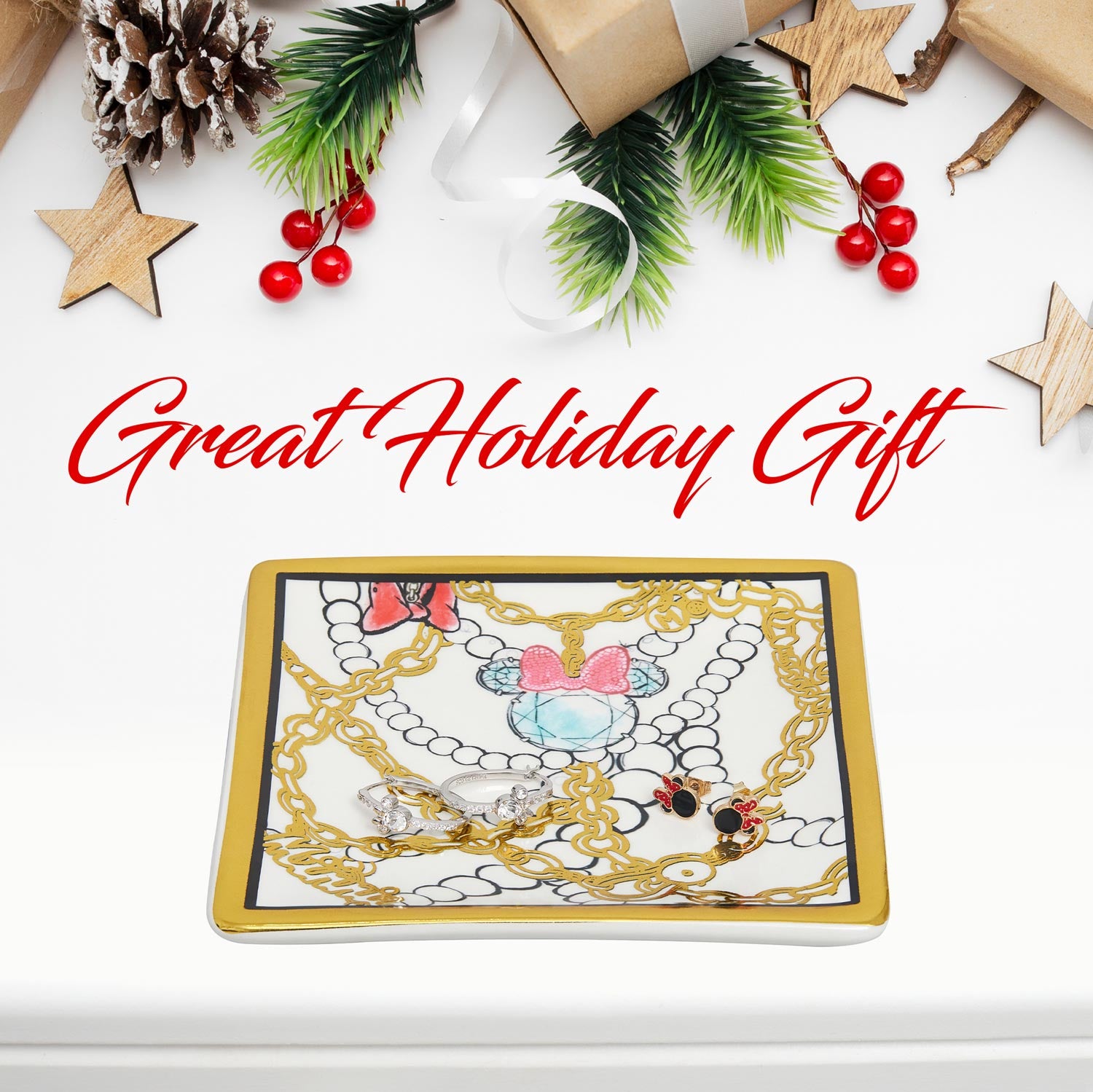 Exquisitely crafted high quality glazed ceramic tray for decorative use only; length 5.5" width 6.5" height 0.25": cute and practical organizer; leave it by the sink in the bathroom or kitchen while you wash your hands, do dishes or prepare a meal; keep by your nightstand to store your rings, earrings, necklaces and watch or place by the entryway as a catchall for keys, wallet, and change