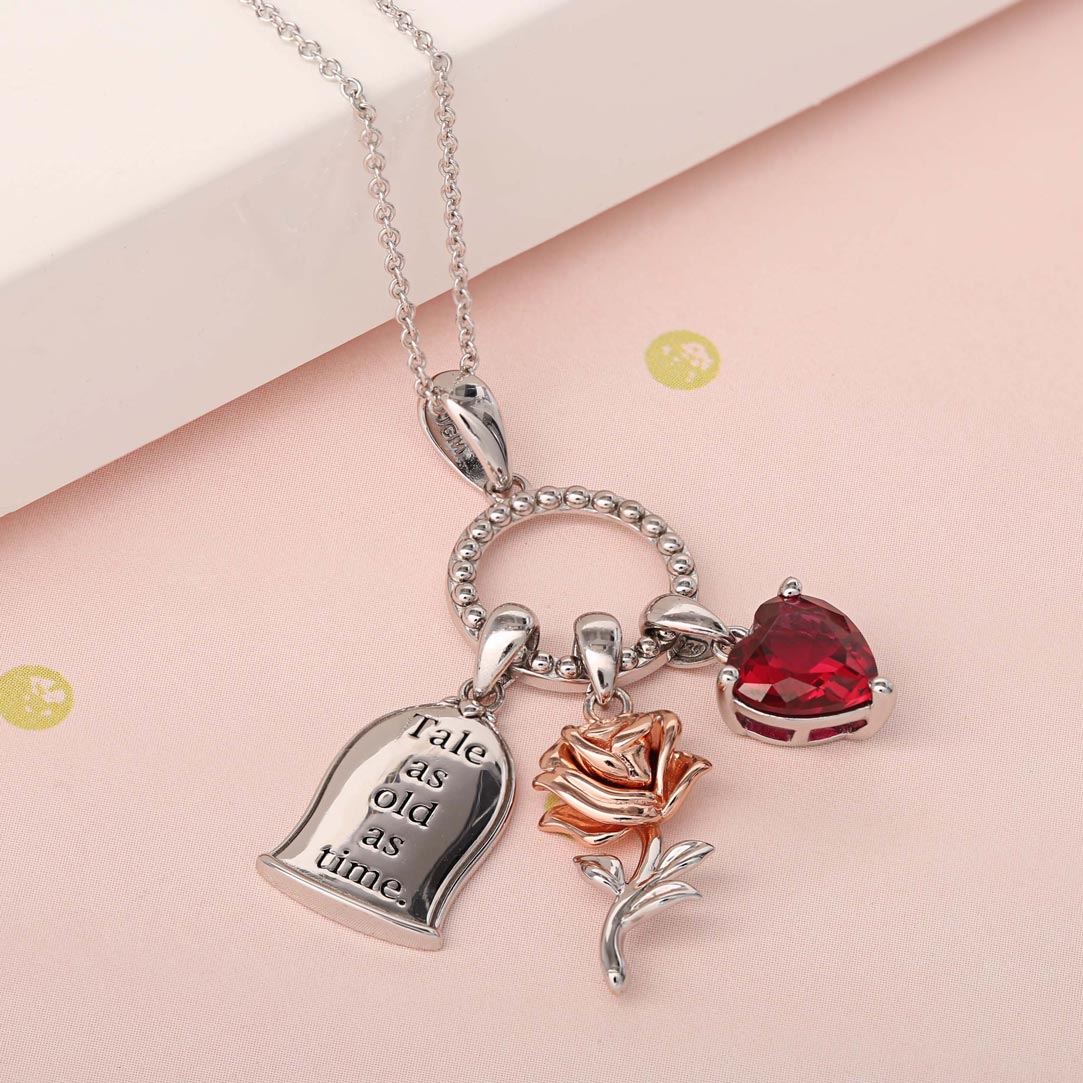 Disney Princess Beauty and the Beast Sterling Silver Charm Necklace