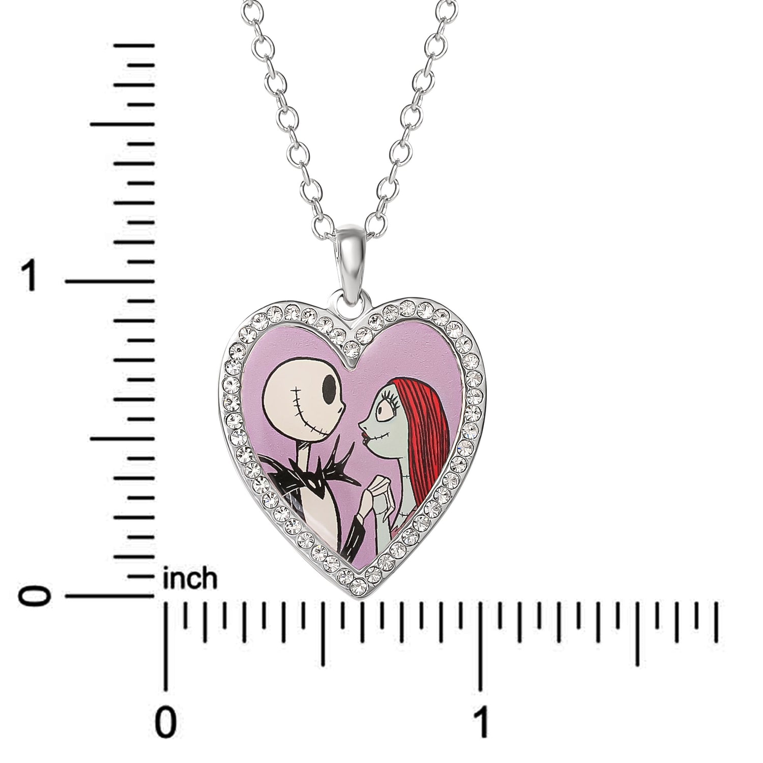 For fans of Jack and Sally, this The Nightmare Before Christmas necklace is a wearable dream. 18-inch silvertone chain necklace has an enamel pendant charm that features Jack and Sally.
