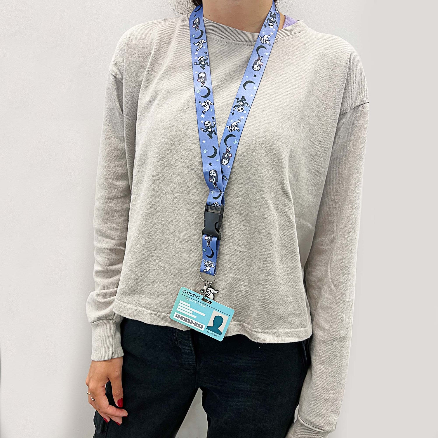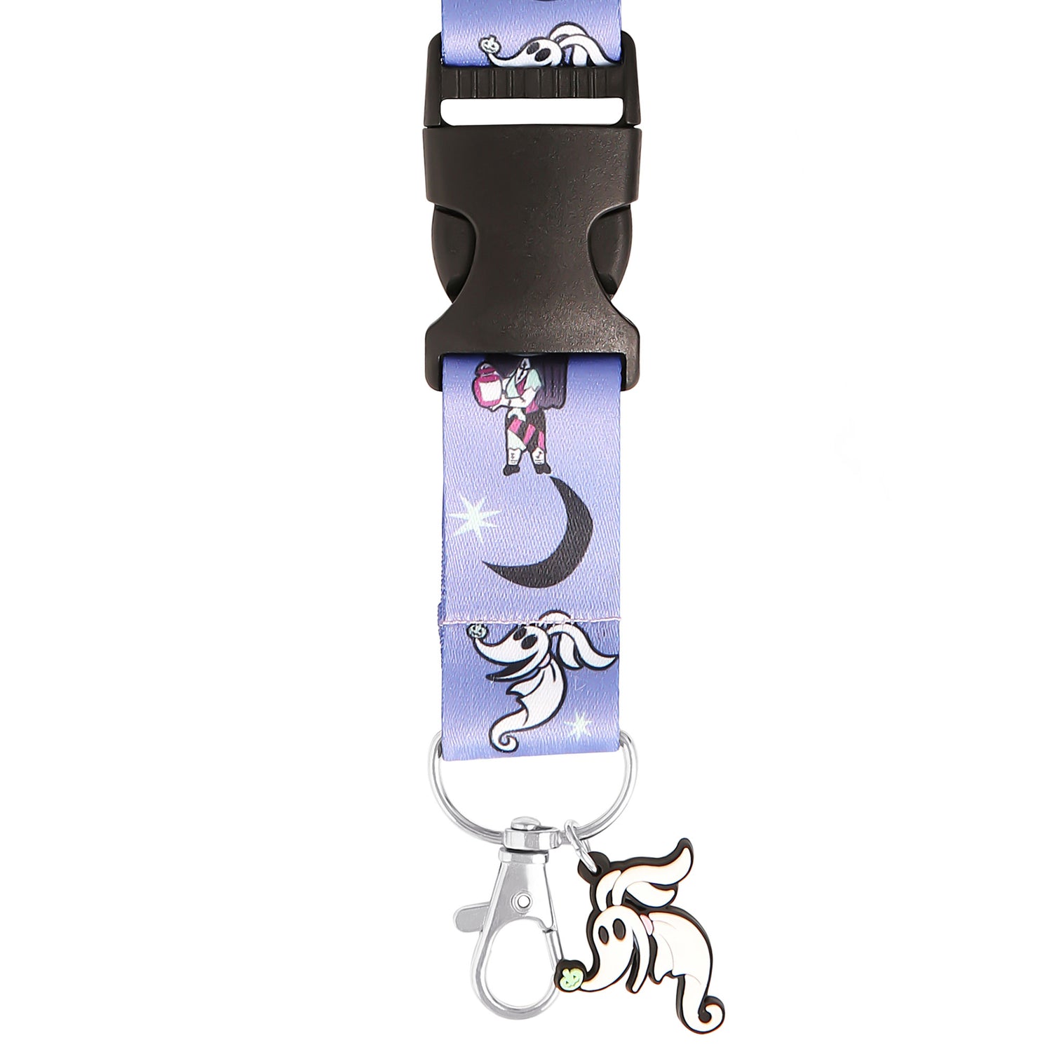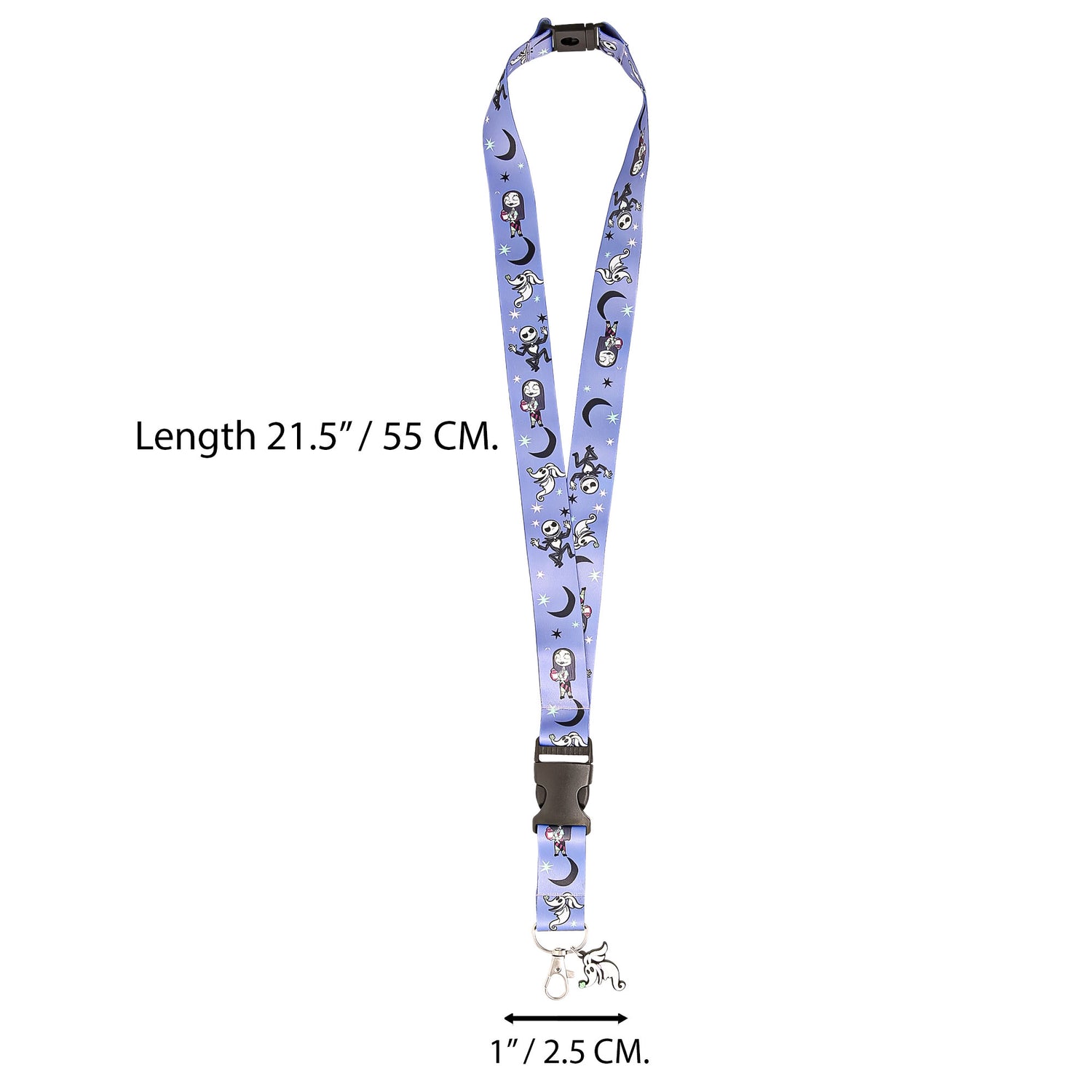 Handy for work or school, the Disney Nightmare Before Christmas Lanyard features a neat print with Jack Skellington and his beloved Sally for standout style. Perfect for fans of Tim Burton's classic film, the 21.5-inch lanyard lets you keep school or office ID, keys, and more readily accessible, whenever and wherever needed. A cool Zero silicone charm hangs next to the lobster clasp clip for the perfect finishing touch. Add a dash of eerie-sistable style to your identification cards, badges and keys with this must for The Nightmare Before Christmas fans. The fun and functional accessory provides everyday convenience and makes a thoughtful and memorable gift!