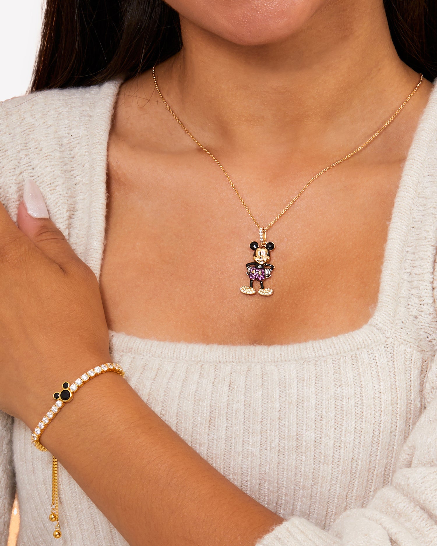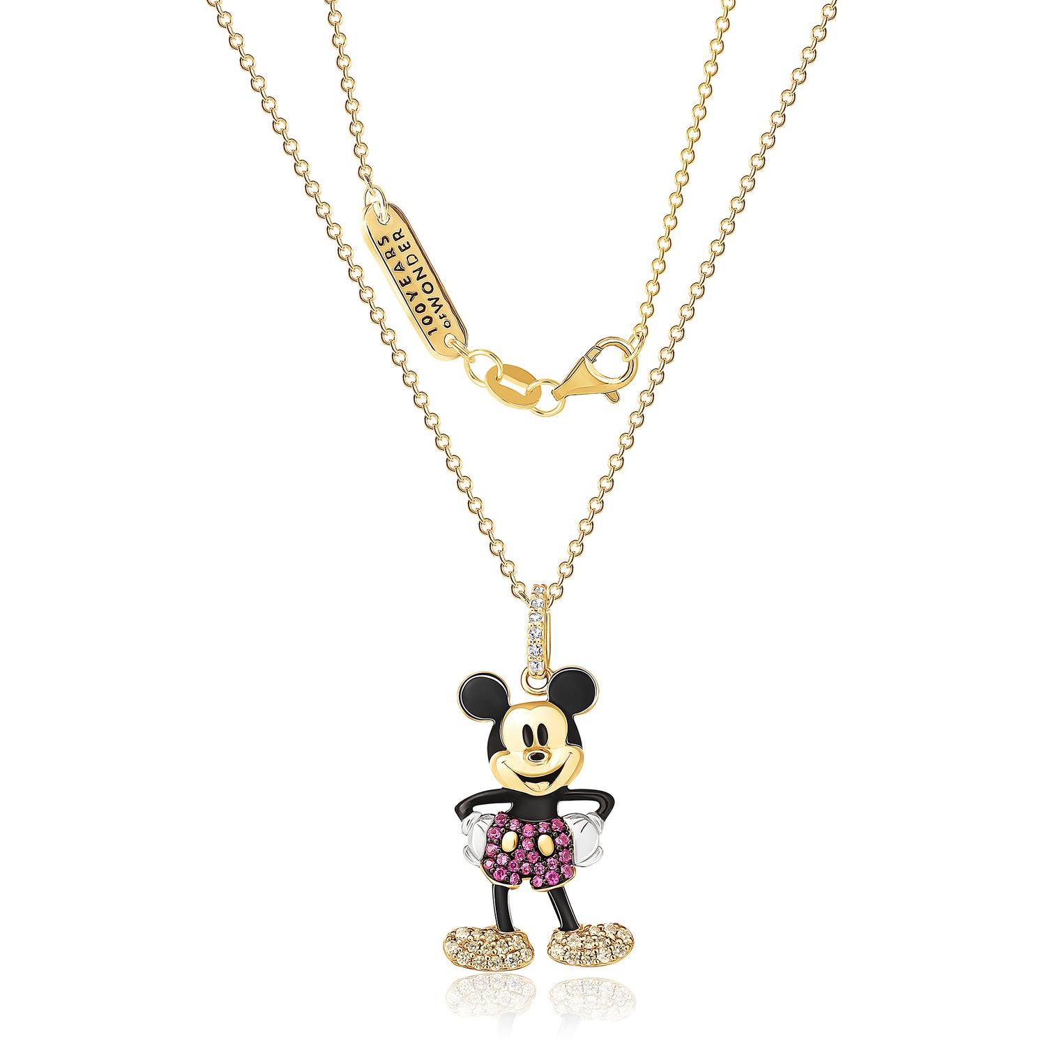 Disney Womens 3D Mickey Mouse Necklace 18", 24kt Gold Plated and Cubic Zirconia Sterling Silver Necklace Official License