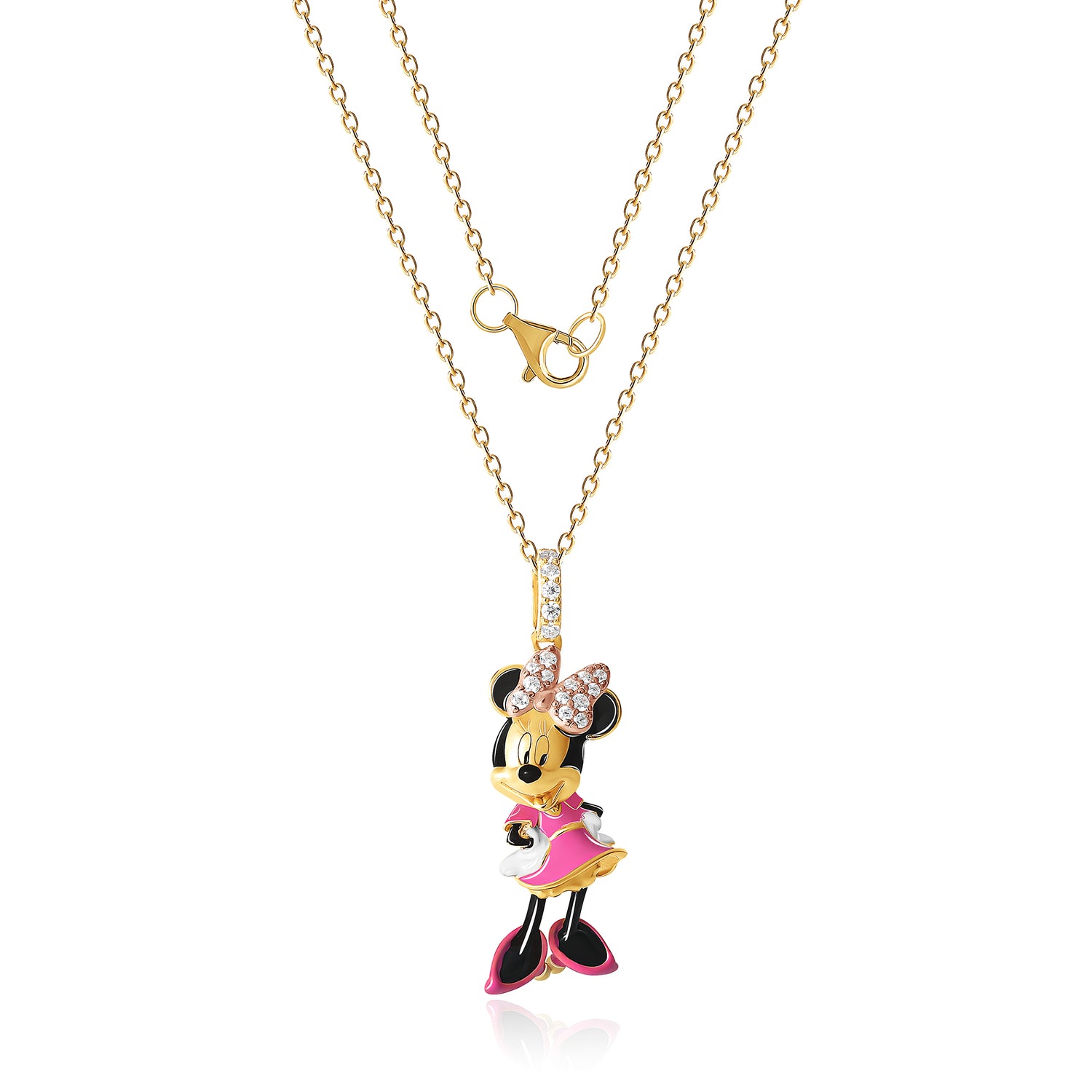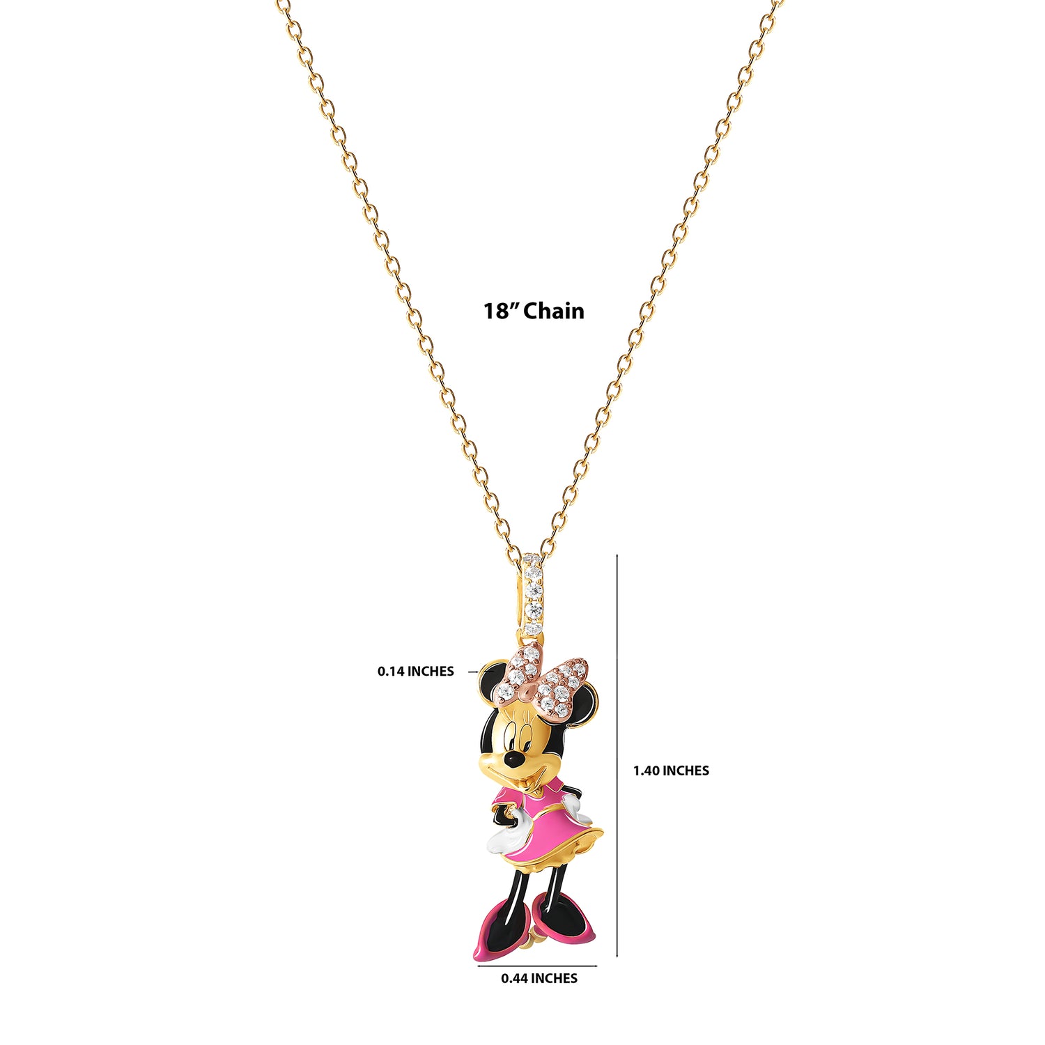 Disney Womens 3D Minnie Mouse Necklace 18", 24kt Gold Plated and Cubic Zirconia Sterling Silver Necklace Official License