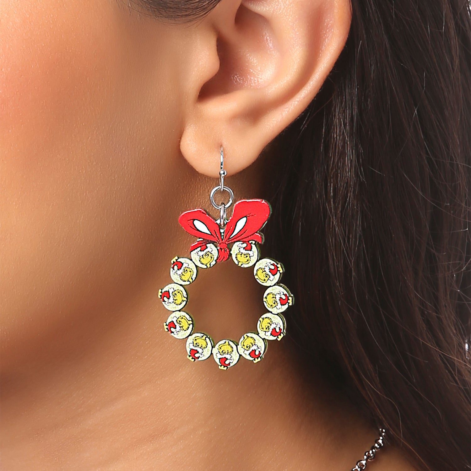 Dr Seuss Grinch Christmas Wreath Dangle Earrings