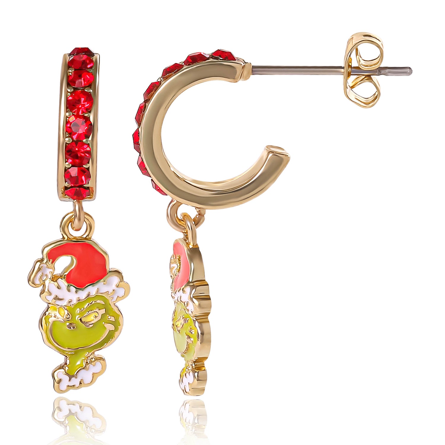 Dr Seuss Grinch Crystal Charm Hoop Earrings