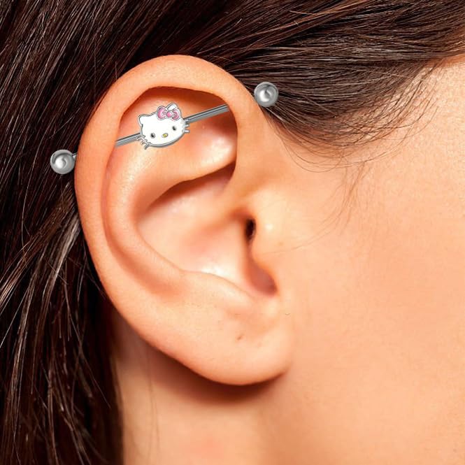 HELLO KITTY BARBELL WITH BRASS DANGLE CARTILAGE EARRING