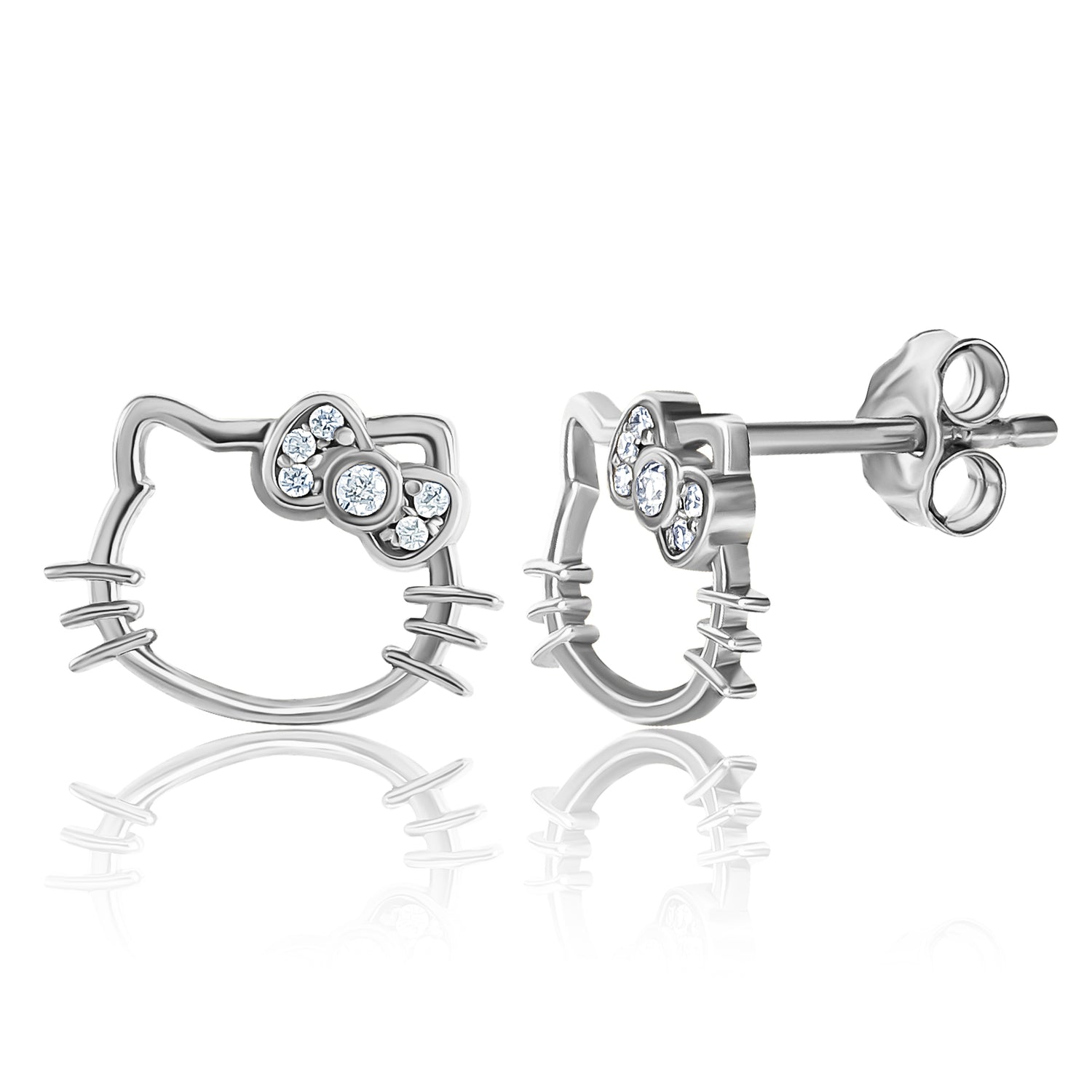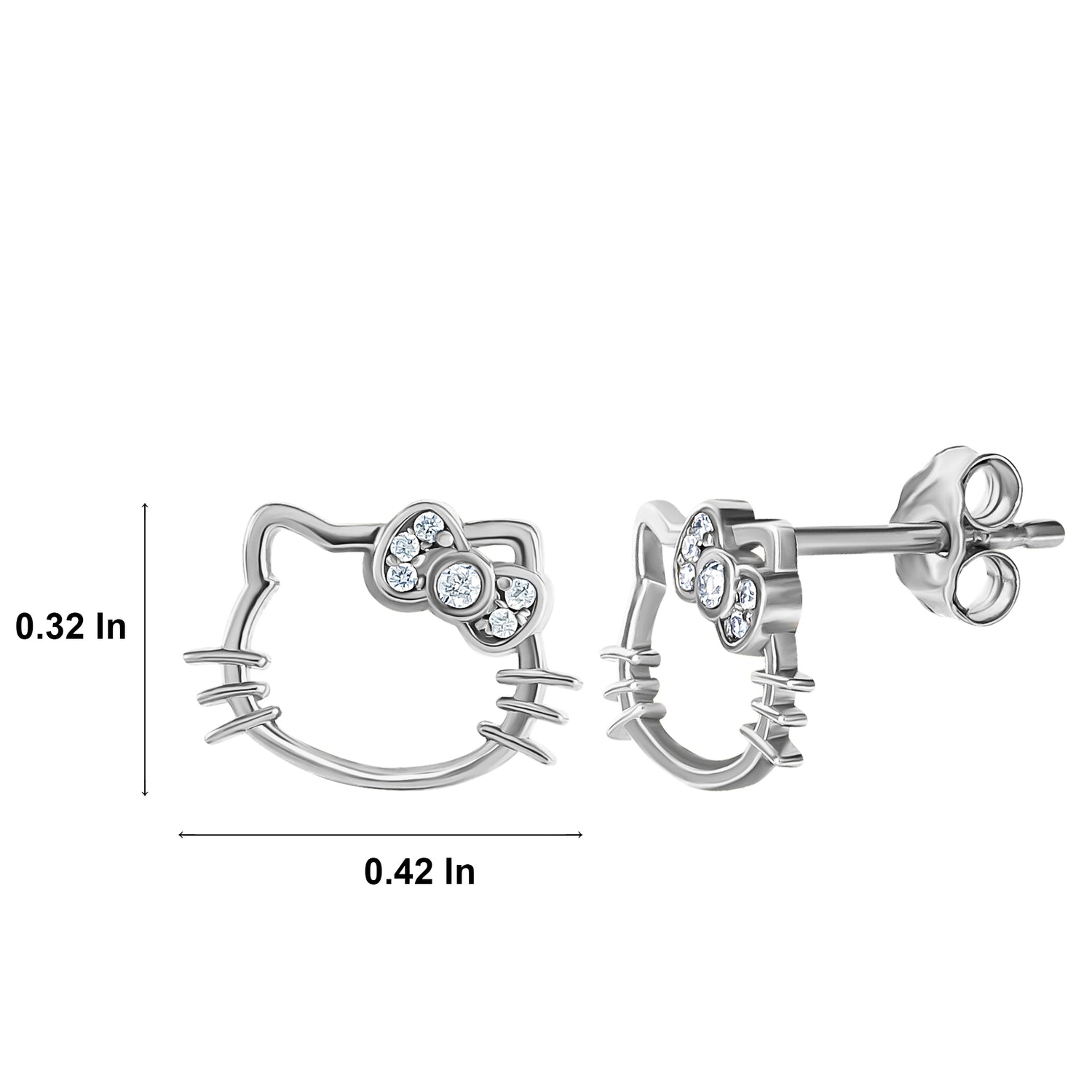 925 Sterling Silver: Open face Hello Kitty stud earrings are crafted from durable 925 sterling silver with rhodium plating. Silver stud earrings have a secure post back closure.