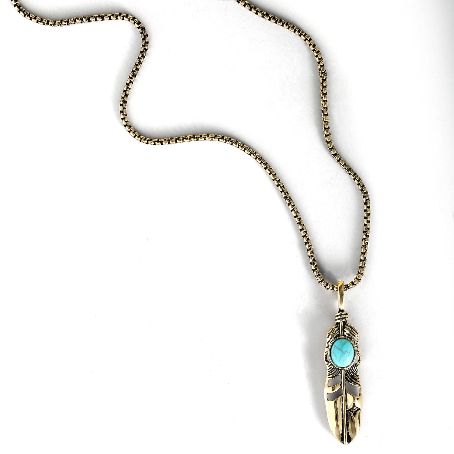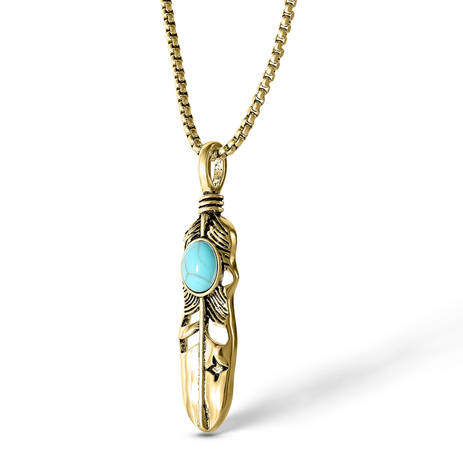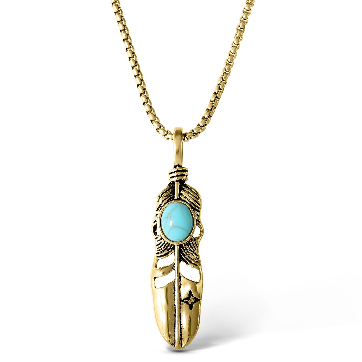 Jessica Simpson Women's Feather Necklace with Turquoise Stone in Gold