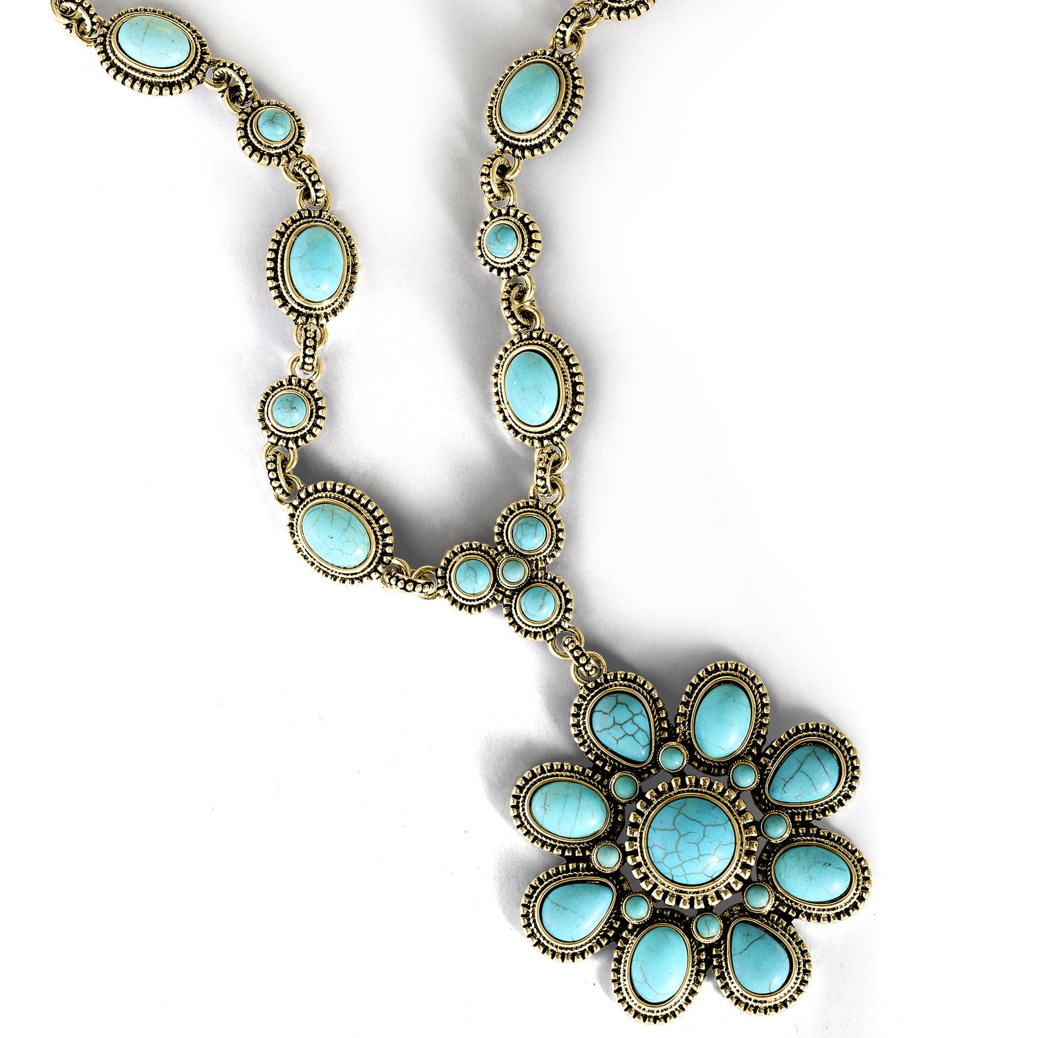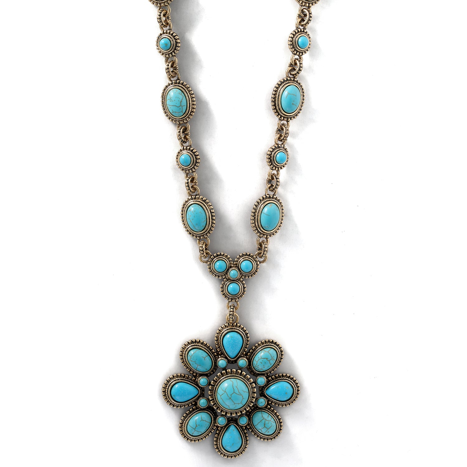 Jessica Simpson Women's Large Turquoise Stone Flower Necklace in Gold