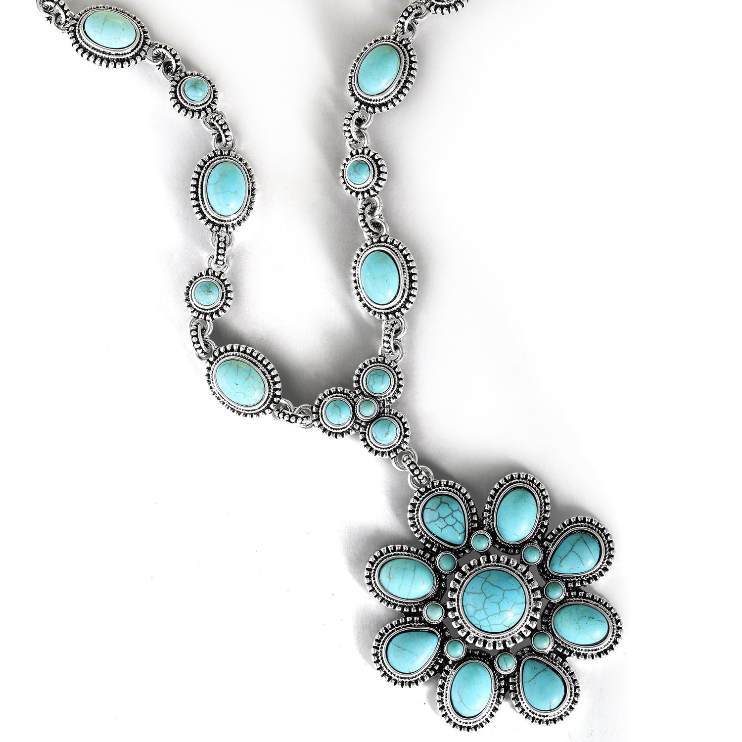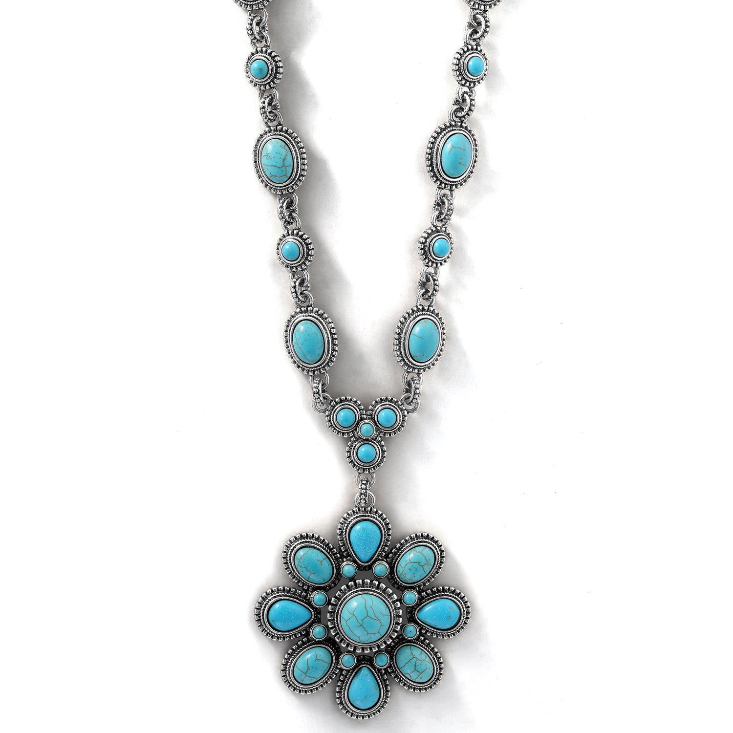 Jessica Simpson Women's Large Turquoise Stone Flower Necklace in Silver