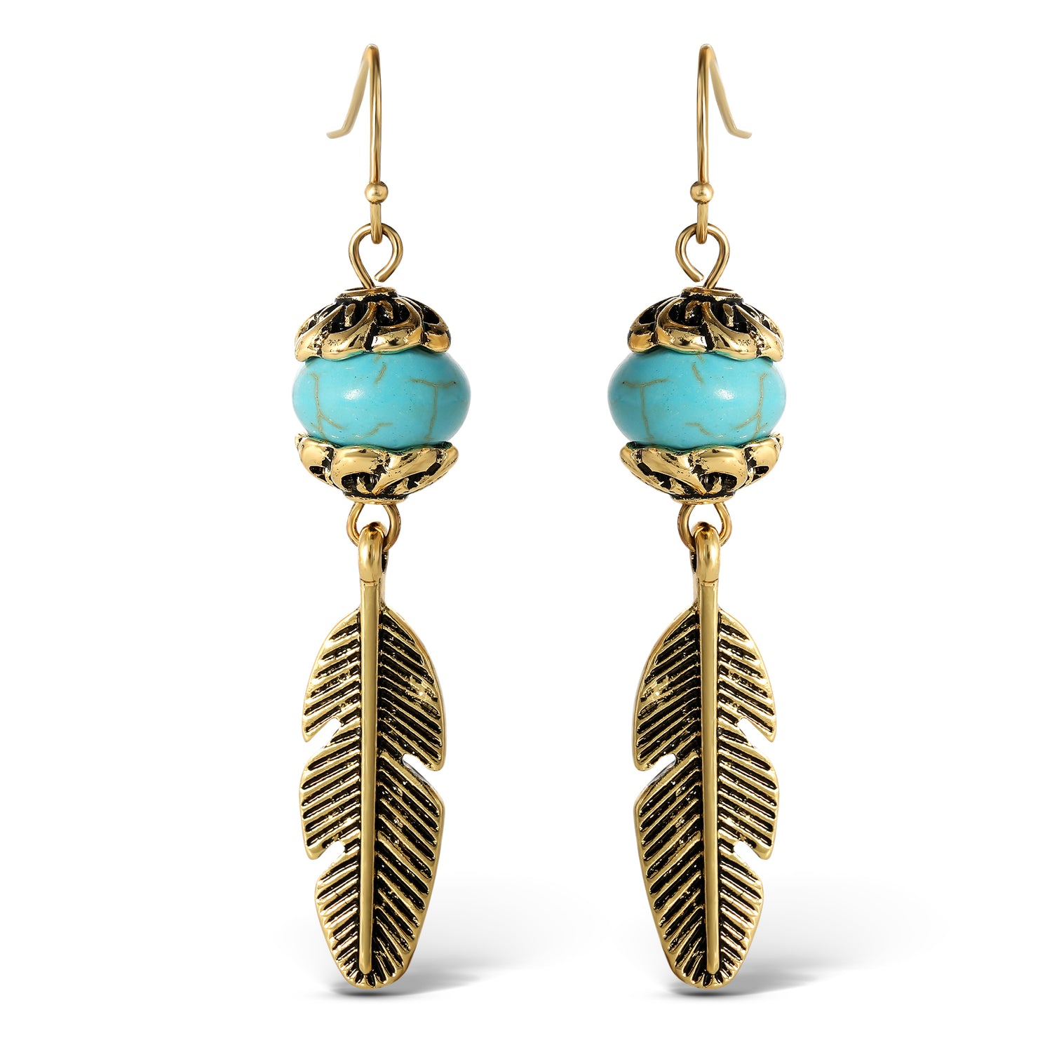 Jessica Simpson Womens Turquoise Bead Feather Drop Earrings - Oxidized Gold-Tone Turquoise Earrings with Drop Feather