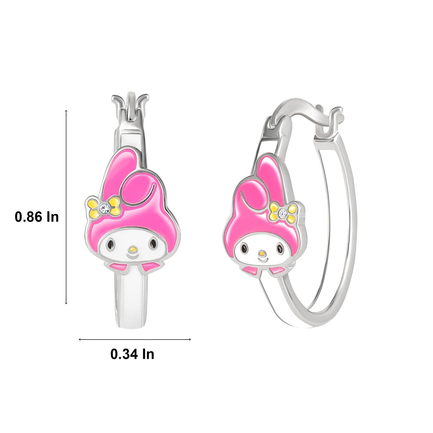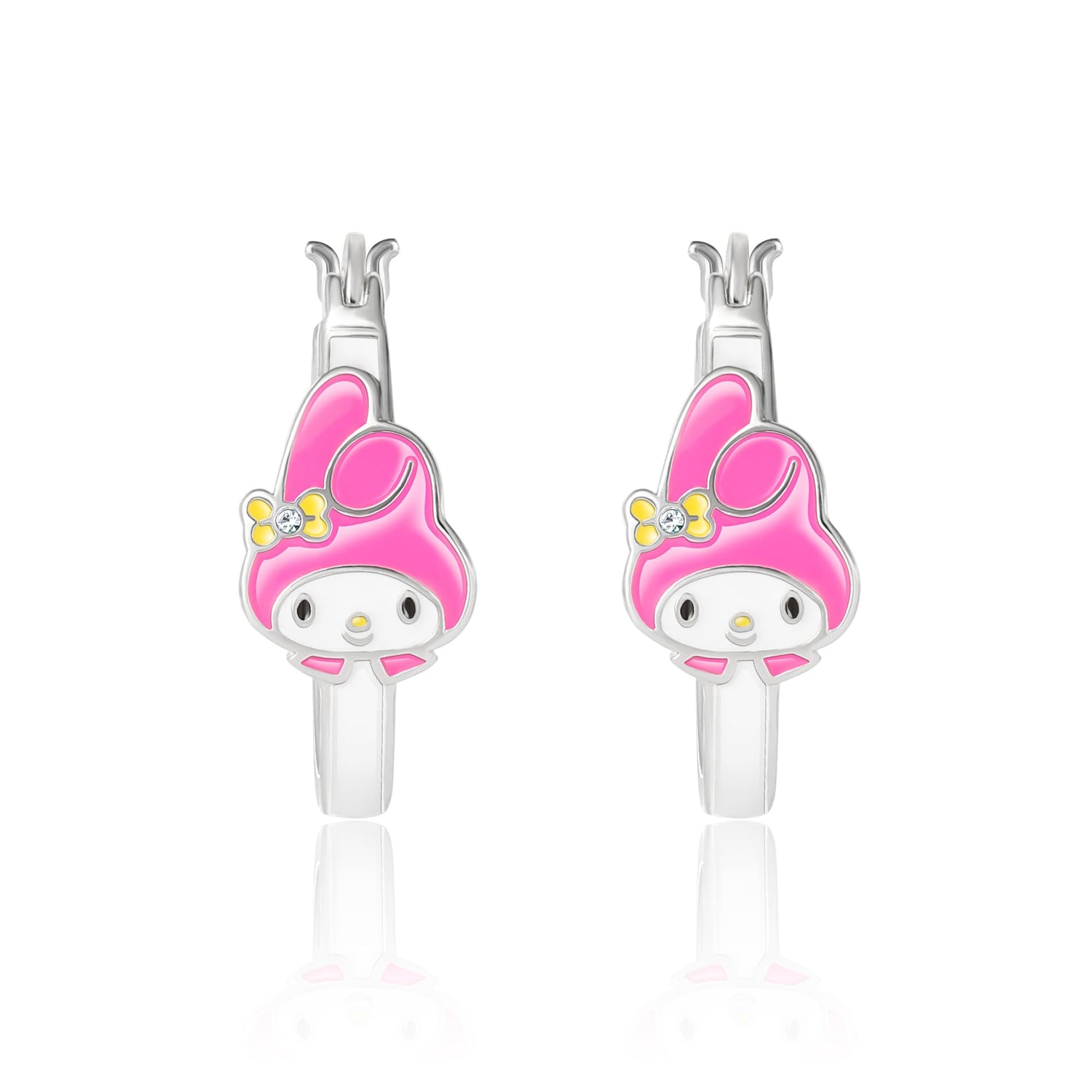 - Express your fondness for the beloved character My Melody with these elegantly crafted hoop earrings featuring intricate enamel detailing.