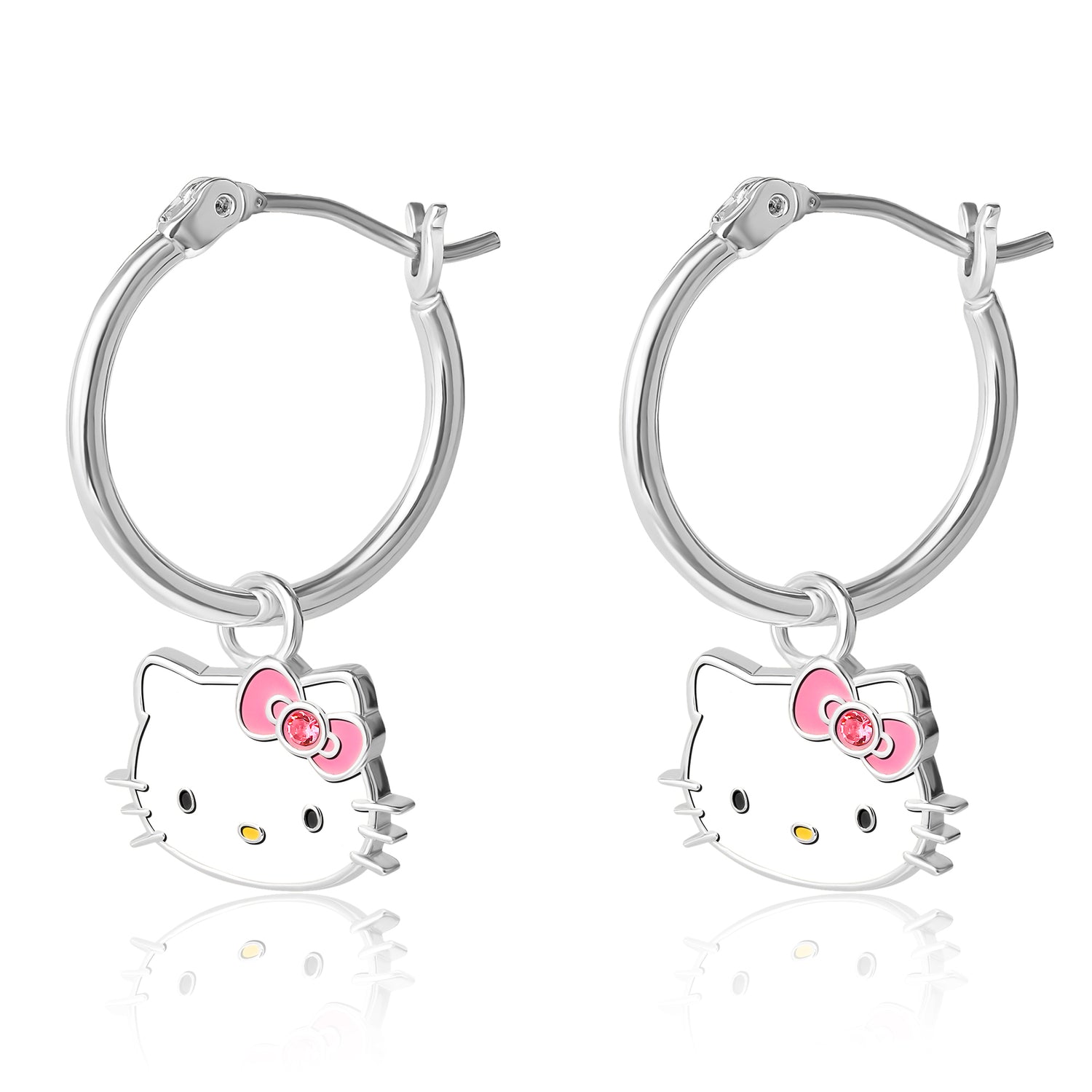 Sanrio Hello Kitty Brass Flash Silver Plated Pink Crystal Charm Hoop Earrings