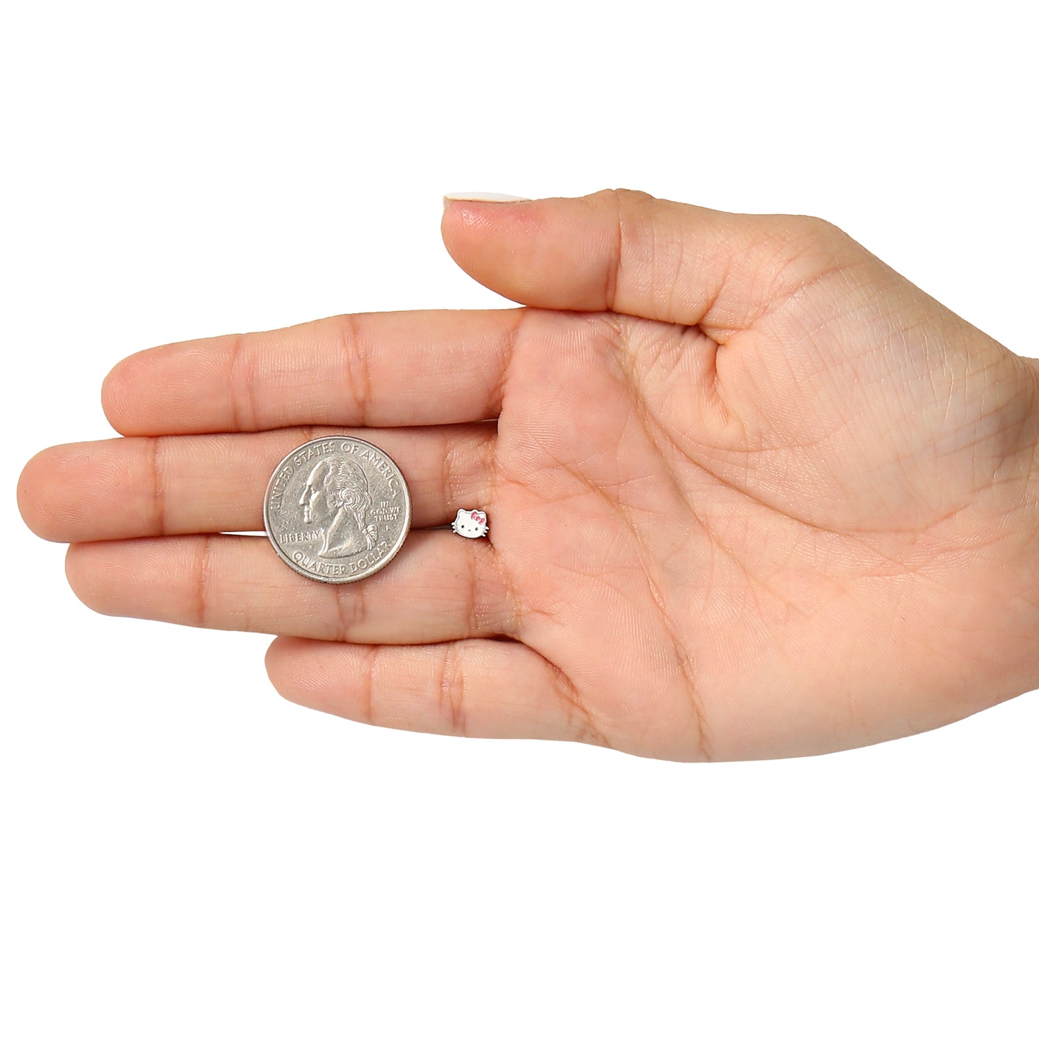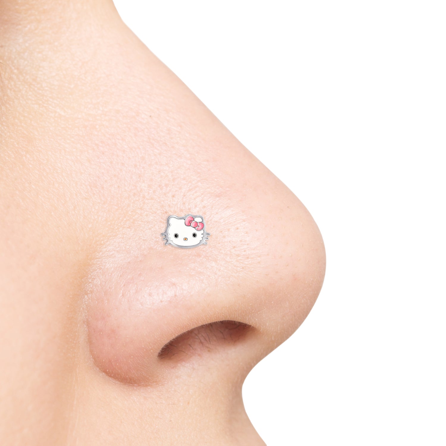 This durable, stainless steel (316L) nose ring features a subtle Hello Kitty design. It is hypoallergenic, so it is safe for skin contact, and it has a deep, vibrant black finish that will not tarnish. The cute design offers subtle style and a unique touch to any look.